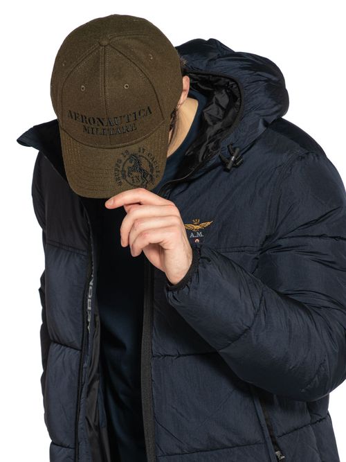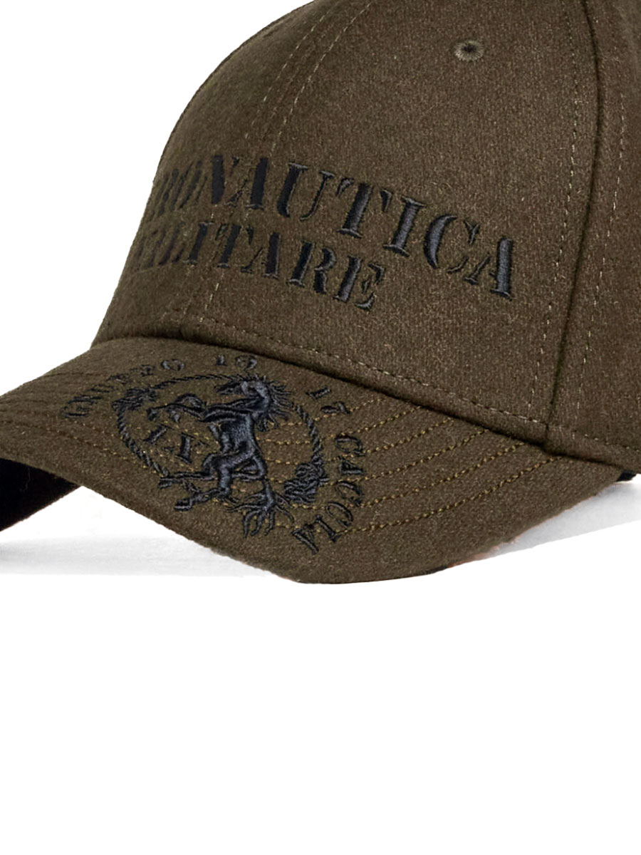 Бейсболка мужская Aeronautica Militare HA1226. Бейсболку с жестким козырьком выполнили из прочной теплой шерстяной ткани, а внутреннюю налобную ленту - из полиэстера. На передней панели вышит логотип, козырек украшен уникальной вышивкой в стиле итальянского бренда, сзади вышивка фирменного символа - орла. Размер изделия регулируется при помощи ремешка с пряжкой. Бейсболка имеет обшитые люверсы для вентилирования кожи головы. Стильное дополнение к куртке или пальто. Состав: 50% шерсть, 50% полиэстер. Подкладка: 100% полиэстер. Цвет Dark Olive: темно-оливковый. Страна бренда: Италия. Страна производства: Китай.