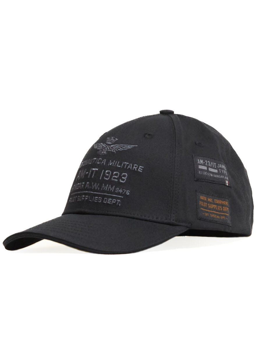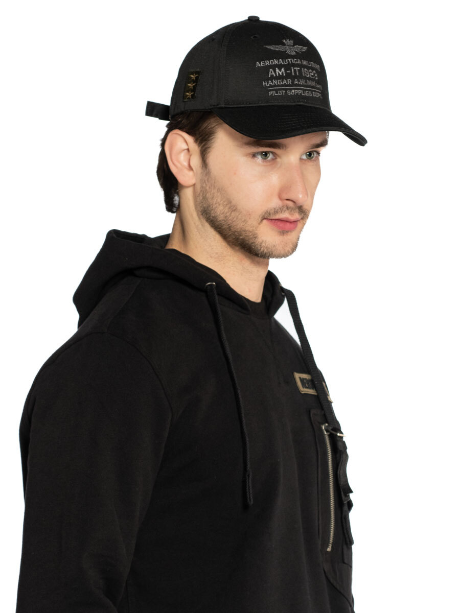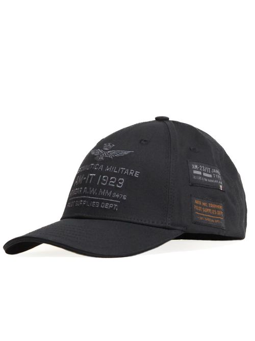 Бейсболка мужская Aeronautica Militare HA1223. Бейсболка отшита из плотного и прочного хлопкового твила. Головной убор декорирован фирменными аппликациями и оригинальной вышивкой. Посадка регулируется ремешком на металлической пряжке с лазерной гравировкой эмблемы и логотипа марки. Комфорт добавляют обшитые люверсы, отвечающие за циркуляцию воздуха, и внутренняя налобная лента. Модный аксессуар для тех, кто ценить стиль и внимание к деталям. Состав: 100% хлопок. Подкладка: 96% полиэстер, 4% хлопок. Цвет Jet Black: черный. Страна бренда: Италия. Страна производства: Китай.