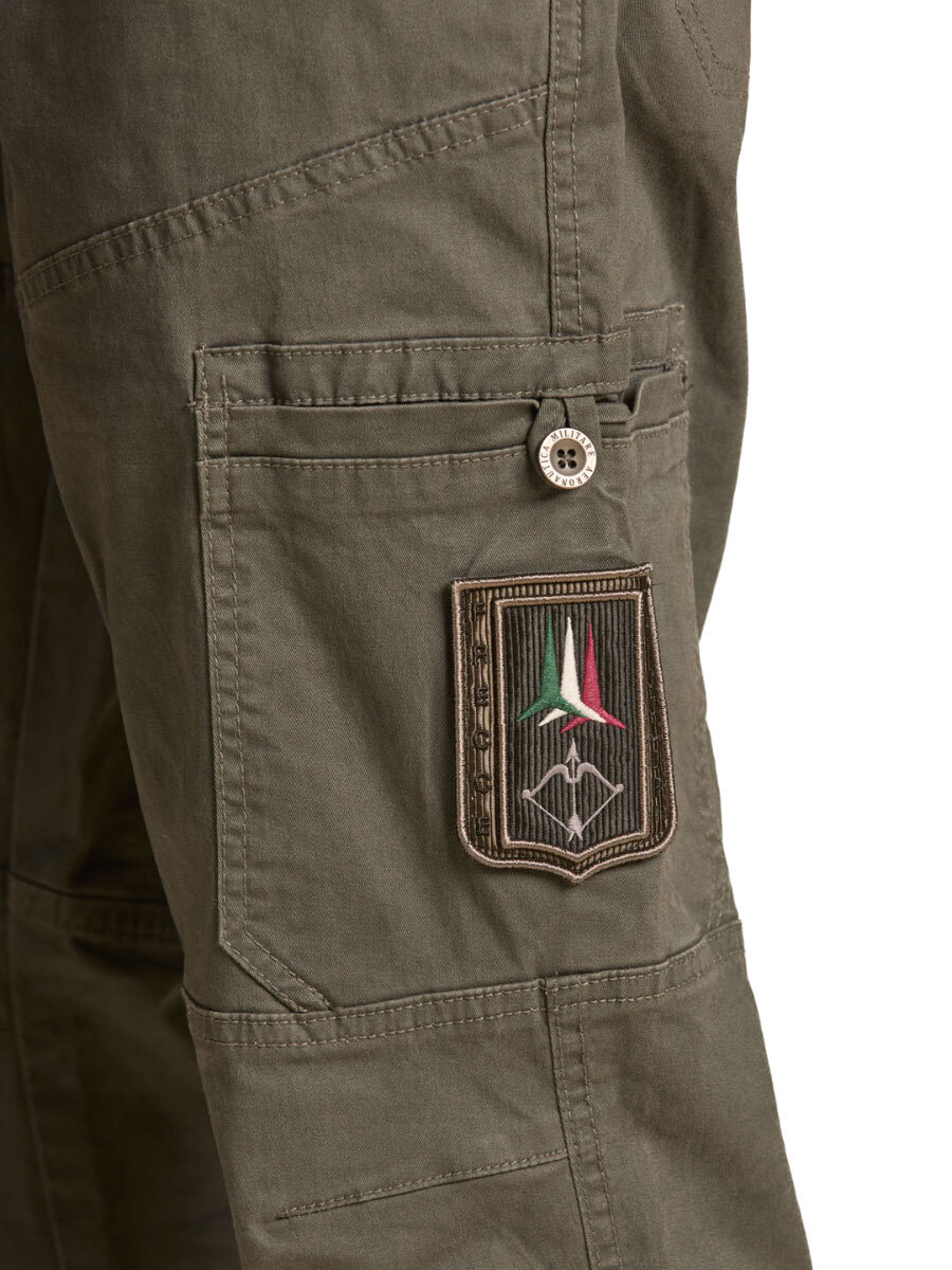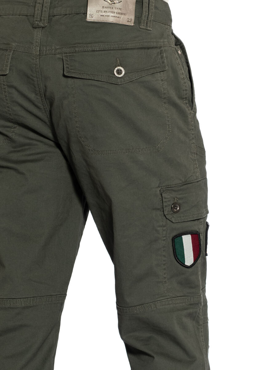 Брюки мужские Aeronautica Militare PA1688. Брюки карго отшиты из комфортно тянущегося плотного хлопка матовой структуры. Профилированные колени и усиленные швы повышают прочность и эргономичность конструкции. Модель дополнена большим количеством карманов. На накладных карманах выполнены фирменные нашивки. Функциональные стильные брюки от итальянского бренда. Состав: 98% хлопок, 2% эластан. Цвет Beluga Grey: серо-зеленый. Страна бренда: Италия. Страна производства: Бангладеш.
