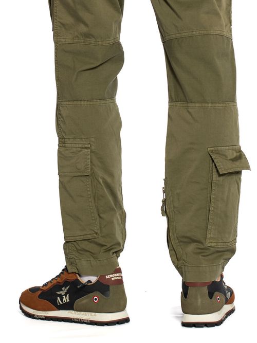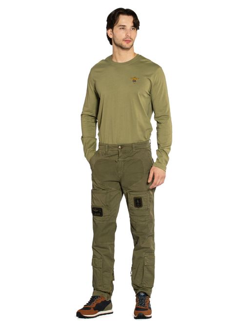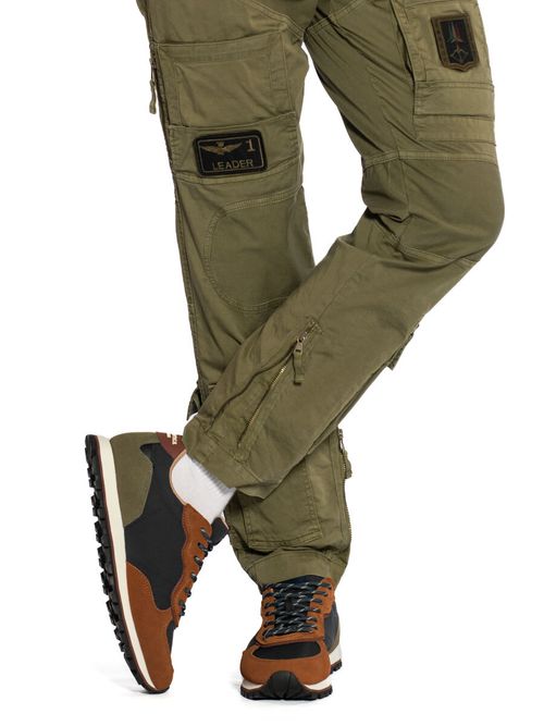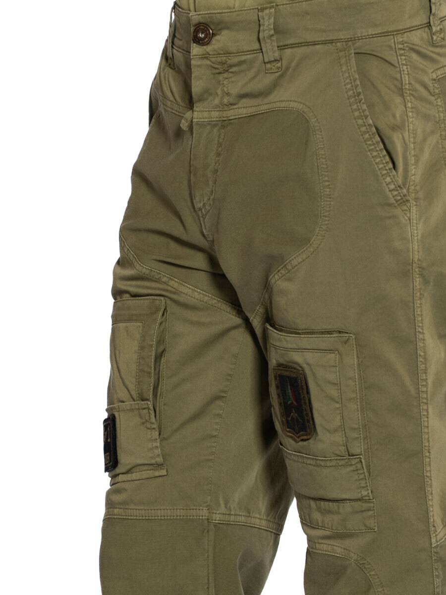Брюки мужские Aeronautica Militare PA1387. Брюки-карго - модель Anti-G с дизайном по мотивам специальной летной формы пилотов. Плотная хлопковая ткань с добавлением эластана обеспечивает естественную мягкость, устойчивость к сминанию и комфорт при движении. Модель зауженного кроя с конструктивными линиями и большим количеством карманов. В нижней части штанин застежки-молнии. Карманы-карго со съемными нашивками и дополнительными молниями - функциональный и стильный элемент, отсылающий к авиационным корням итальянского бренда. Состав: 97% хлопок, 3% эластан. Цвет Green: зеленый. Страна бренда: Италия. Страна производства: Албания.
