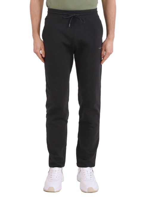 Брюки мужские Aeronautica Militare PF1025. Брюки прямого кроя из легкого хлопкового трикотажа с эффектом стрейч. Комфортный мягкий внутри материал с дышащей структурой и добавлением эластичных волокон дает естественную свободу движений. Брюки оформлены эластичным поясом с фирменным шнурком, имеют два боковых кармана для рук, задний карман в рамку и вышитый символ итальянского бренда - орел. Незаменимый предмет современной моды и активного образа жизни. Состав: 94% хлопок, 6% эластан. Цвет Jet Black: черный. Страна бренда: Италия. Страна производства: Бангладеш.