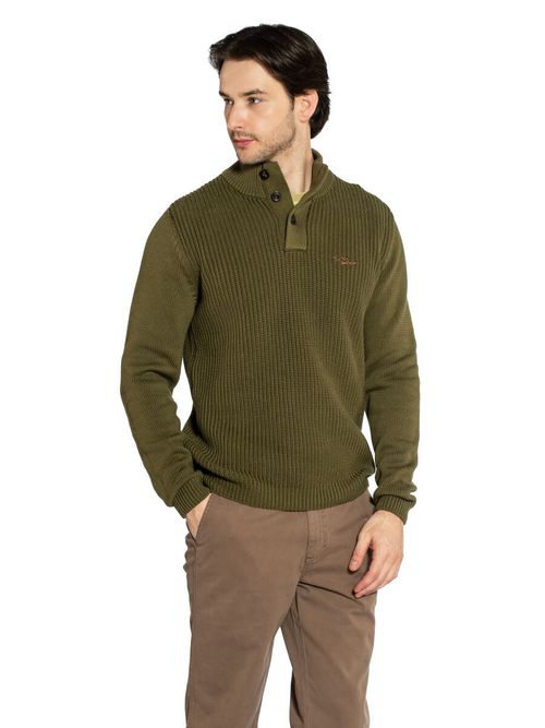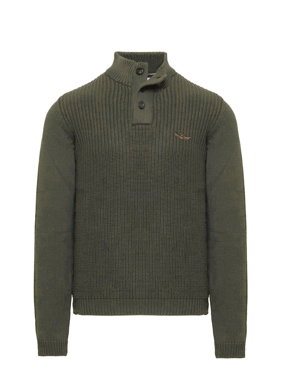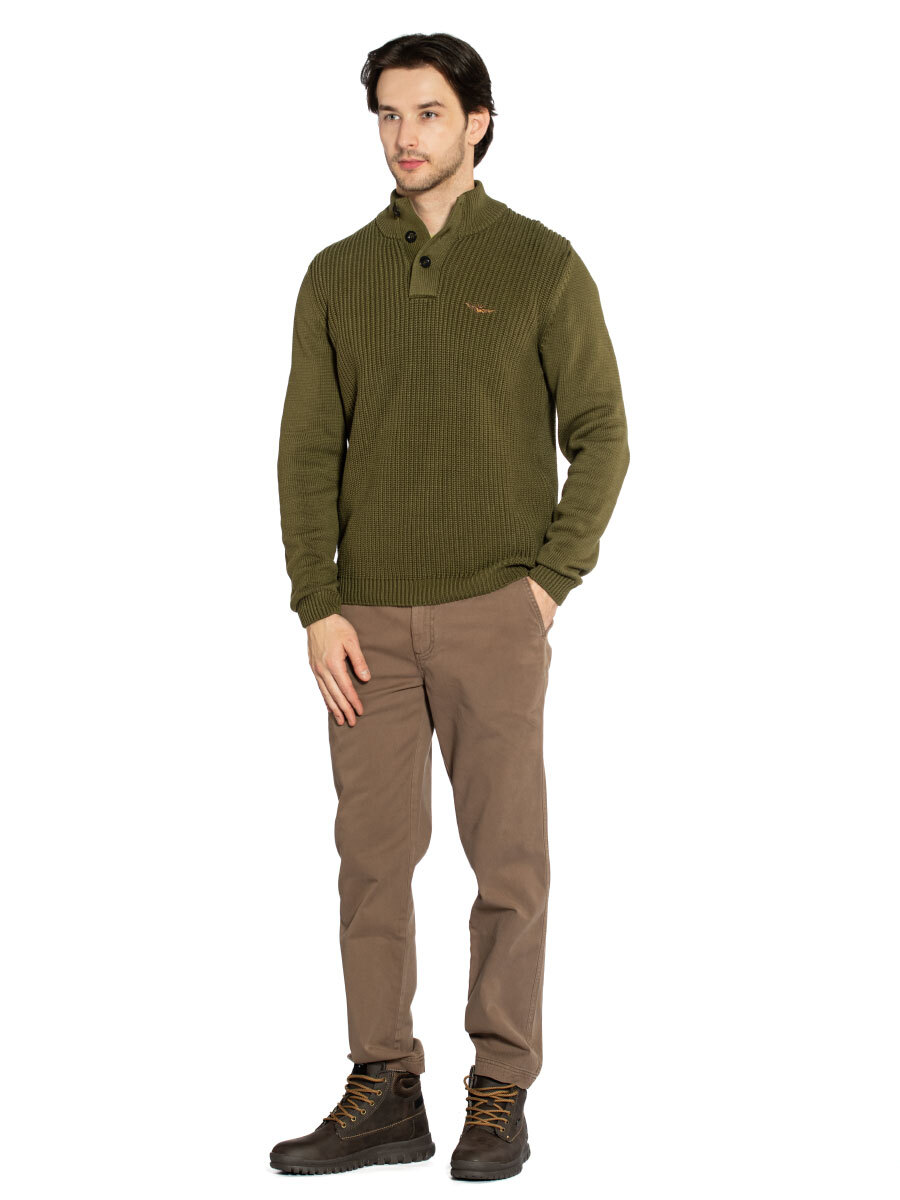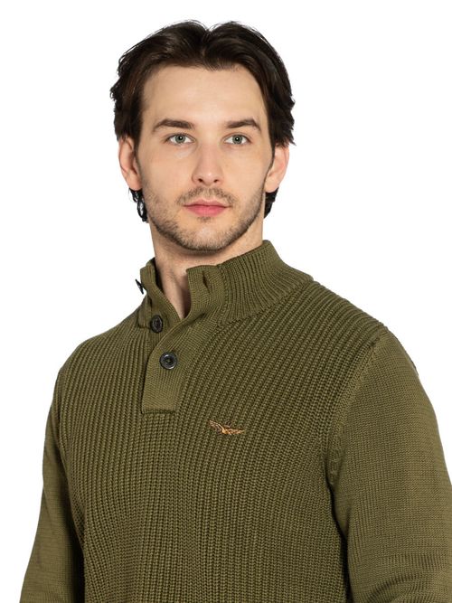 Джемпер мужской Aeronautica Militare MA1572. Джемпер из объемного трикотажа структурной вязки с гладкими рукавами. Мягкий отборный хлопок удерживает тепло, дышит и приятно ощущается на коже. Модель выполнена с высоким воротником, который застегивается на 3 пуговицы. На груди вышит фирменный логотип,. Стильный фирменный трикотаж в мужской гардероб. Состав: 100% хлопок. Цвет Grigio Melange: темно-оливковый. Страна бренда: Италия. Страна производства: Болгария.
