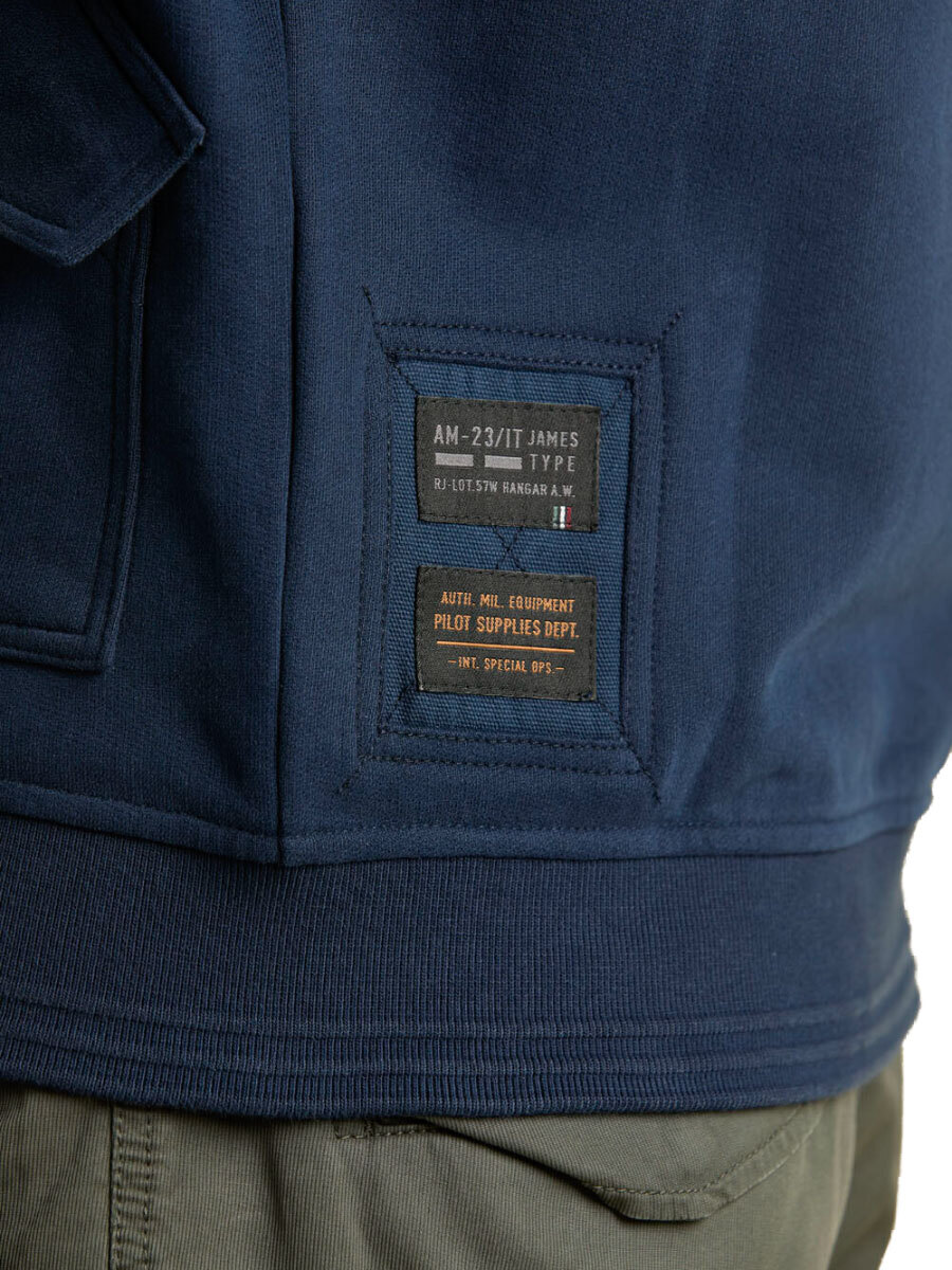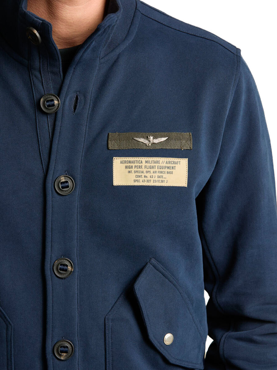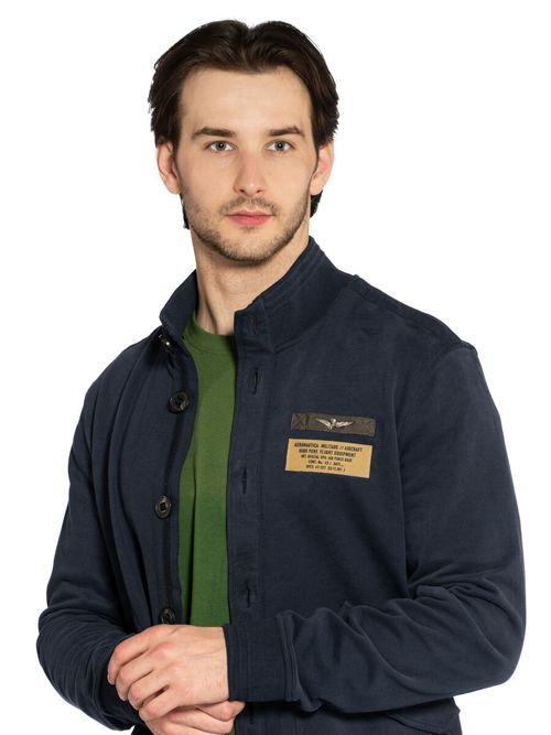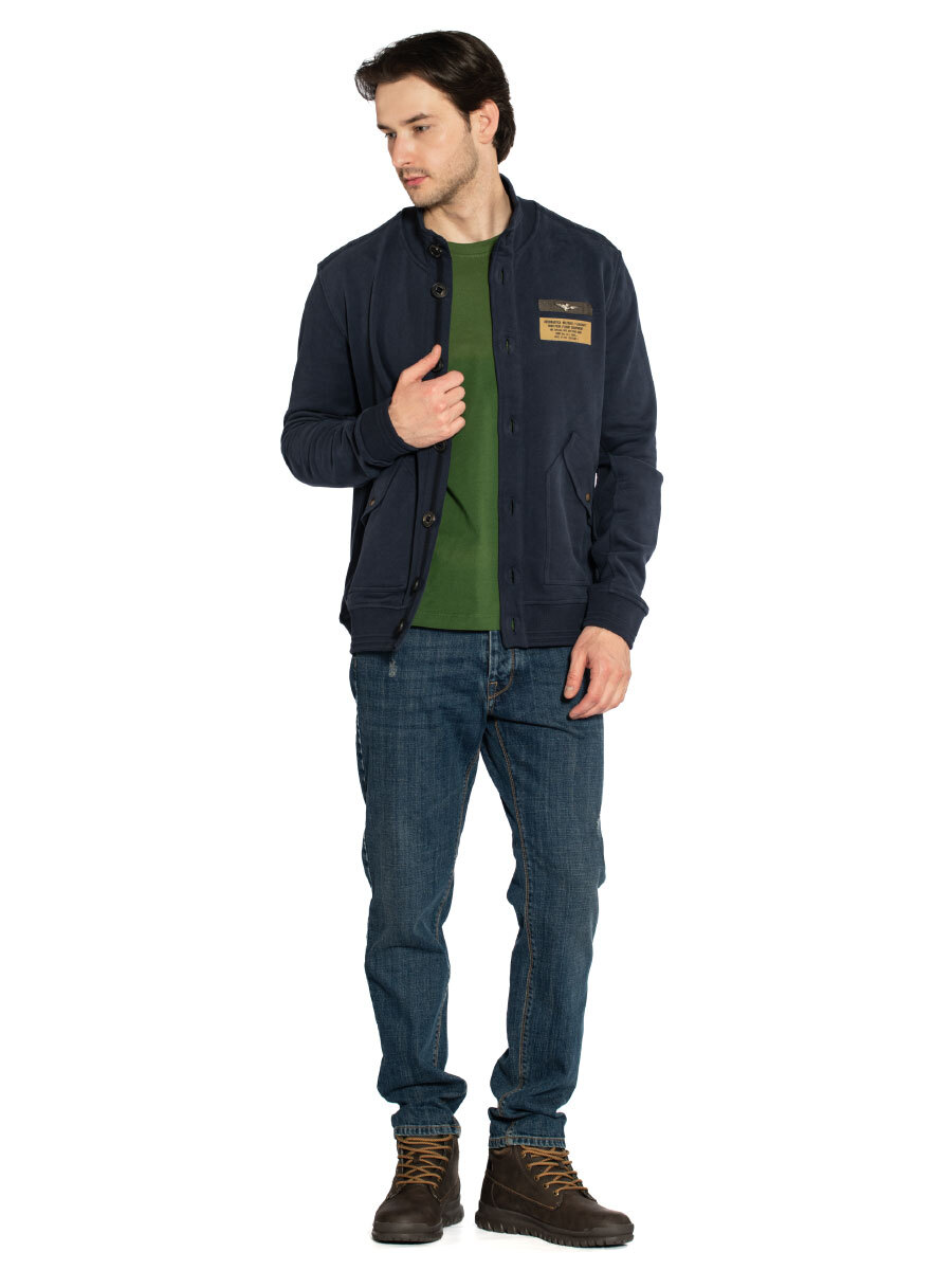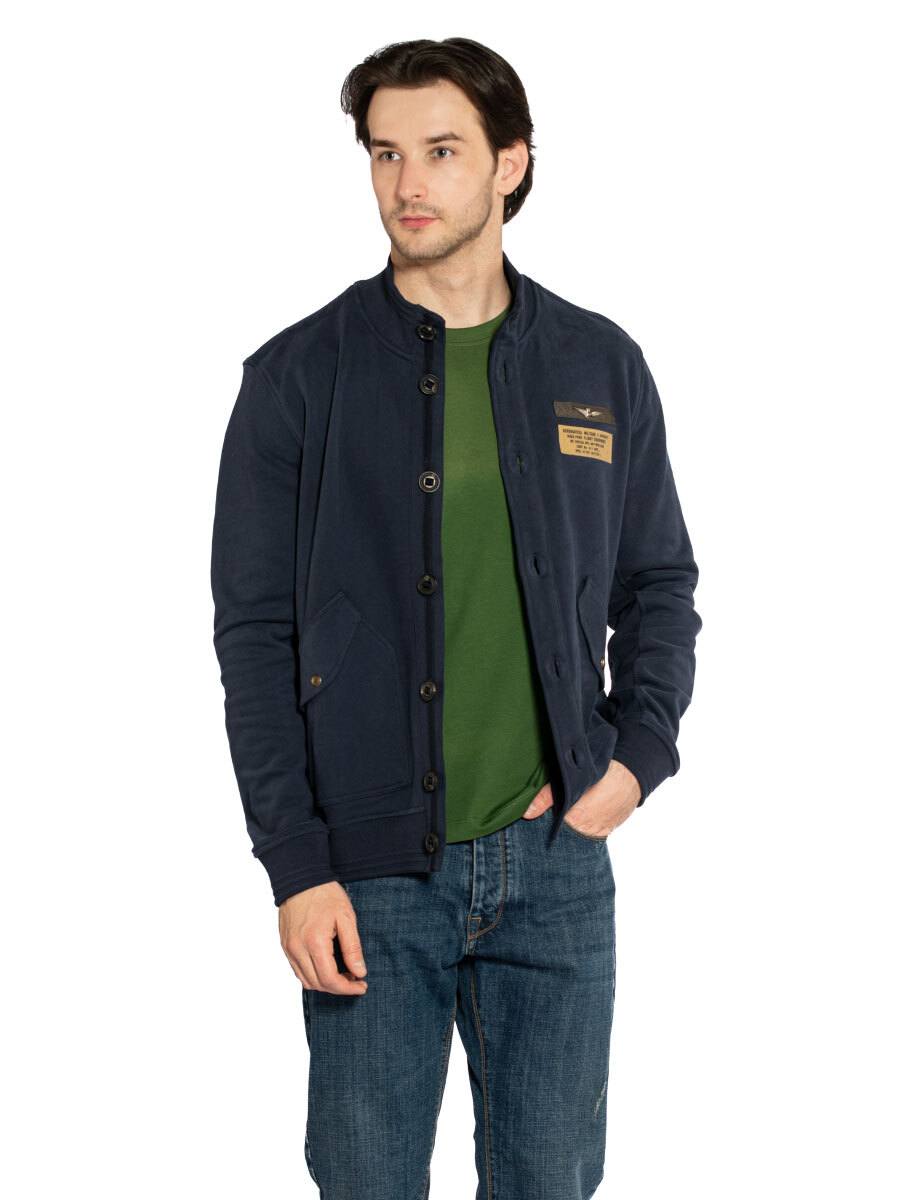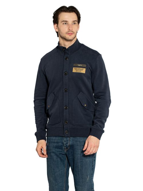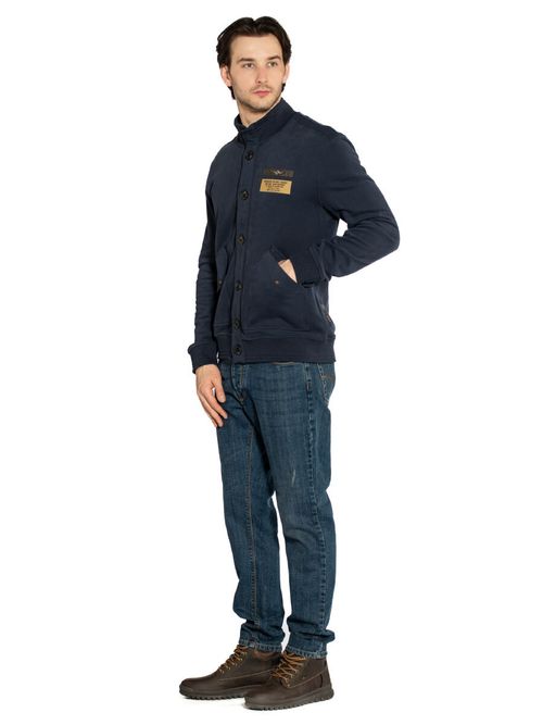 Толстовка мужская Aeronautica Militare FE2072. Стильная кофта на пуговицах, сочетающая комфорт толстовки с функциональностью демисезонной куртки. Модель отшита из мягкого теплого хлопка. Толстовка дополнена двумя накладными карманами с клапанами. Воротник-стойка, манжеты рукавов и нижняя планка имеют ребристый дизайн. На груди выполнены фирменные нашивки с символикой бренда, в нижней части спины жаккардовый лейбл. Состав: 100% хлопок. Цвет Blu Navy: темно-синий. Страна бренда: Италия. Страна производства: Турция.