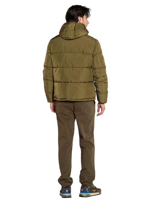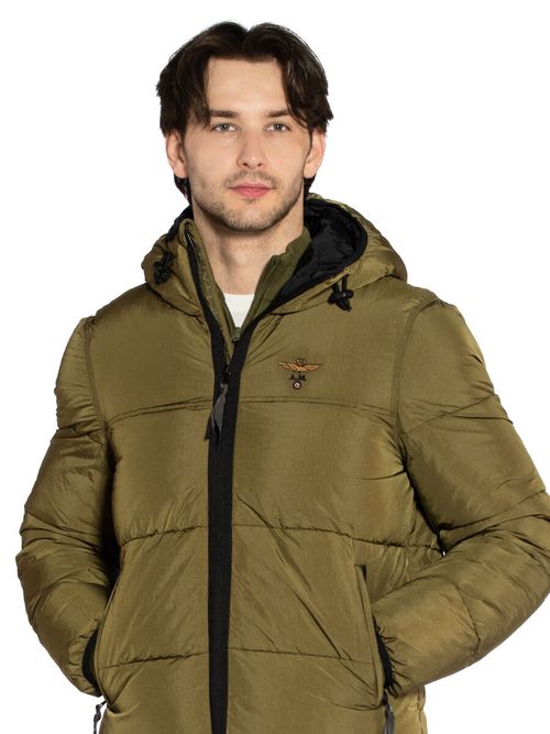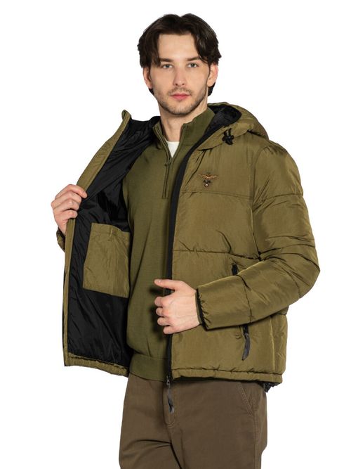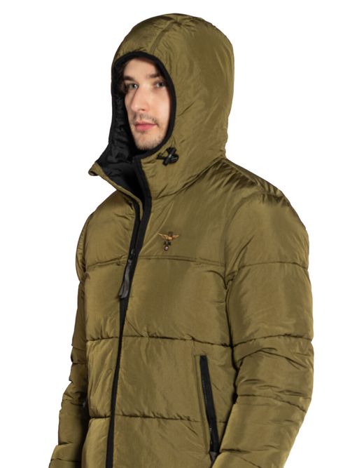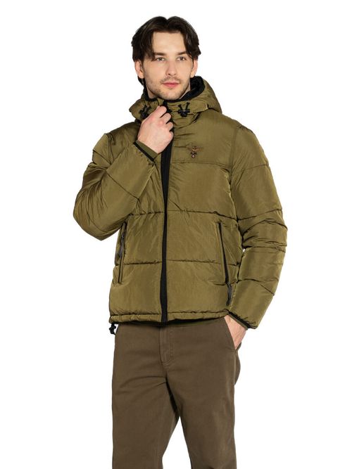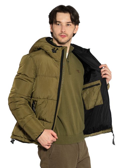 Куртка мужская Aeronautica Militare AB3025. Утепленная куртка в городском стиле из нейлона с фактурной поверхностью. Модель с горизонтальной прострочкой застегивается на молнию с внутренней ветрозащитной планкой, на которой вышит фирменный логотип. Куртка имеет фиксированный регулируемый капюшон, два кармана на молнии и внутренние карманы на молнии. Рукава и капюшон отделаны эластичной тесьмой. Ширина куртки регулируется утяжкой по нижнему краю. На груди вышит символ бренда - орел. Комфортный выбор на межсезонье и теплую зиму. Состав: 100% полиамид. Подкладка: 100% полиамид. Утеплитель: 100% полиэстер. Цвет Dark Olive: темно-оливковый. Страна бренда: Италия. Страна производства: Китай.