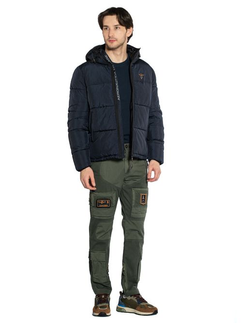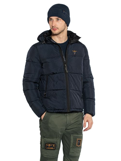 Куртка мужская Aeronautica Militare AB3025. Утепленная куртка в городском стиле из нейлона с фактурной поверхностью. Модель с горизонтальной прострочкой застегивается на молнию с внутренней ветрозащитной планкой, на которой вышит фирменный логотип. Куртка имеет фиксированный регулируемый капюшон, два кармана на молнии и внутренние карманы на молнии. Рукава и капюшон отделаны эластичной тесьмой. Ширина куртки регулируется утяжкой по нижнему краю. На груди вышит символ бренда - орел. Комфортный выбор на межсезонье и теплую зиму. Состав: 100% полиамид. Подкладка: 100% полиамид. Утеплитель: 100% полиэстер. Цвет Midnight Blue: темно-синий. Страна бренда: Италия. Страна производства: Китай.