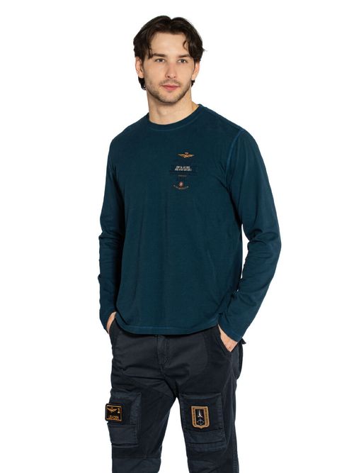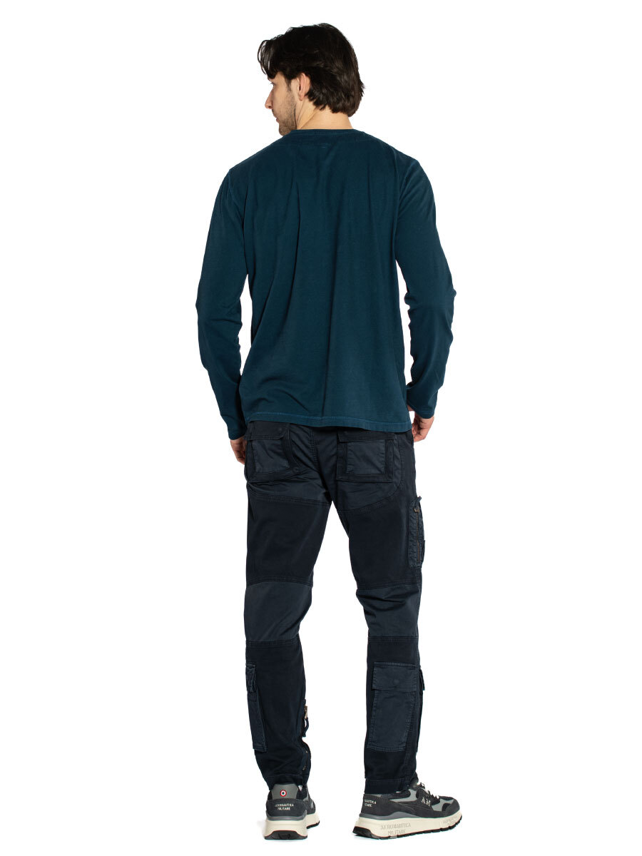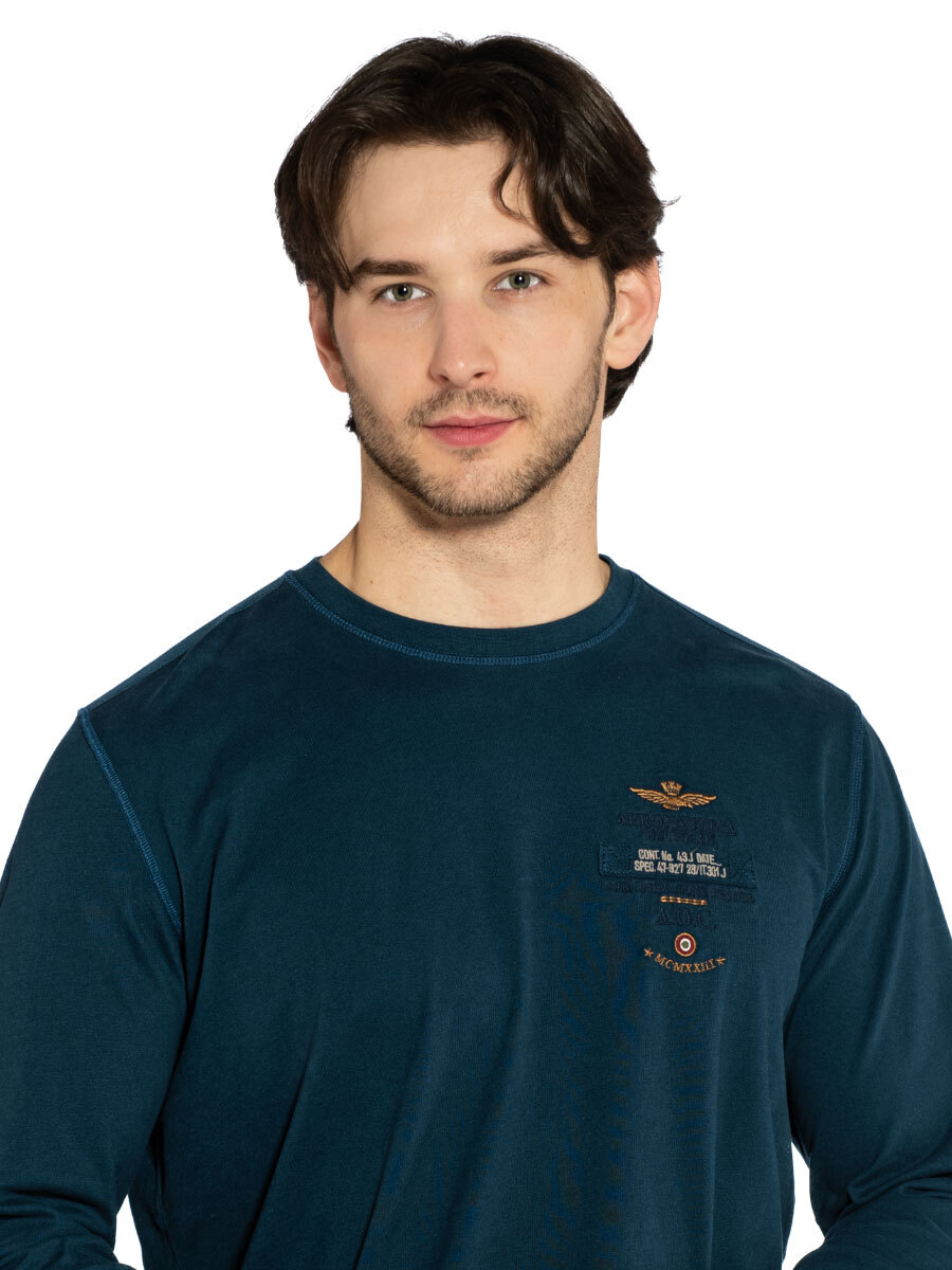 Футболка мужская Aeronautica Militare TS2470. Футболка с аутентичным стилем и пигментным окрашиванием в готовом виде отшита из мягкого хлопка. Модель с длинными рукавами декорирована вышивкой и вставками из канваса на плечах. Эффектная модель премиального качества в мужской гардероб. Состав: 100% хлопок. Цвет Titan Avio: синий. Страна бренда: Италия. Страна производства: Турция.