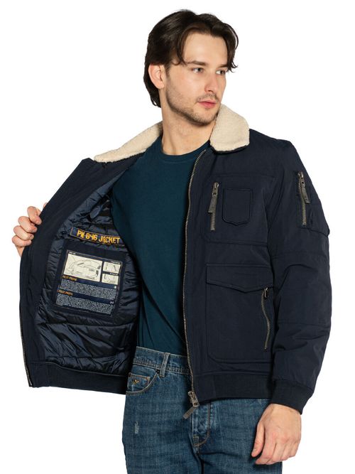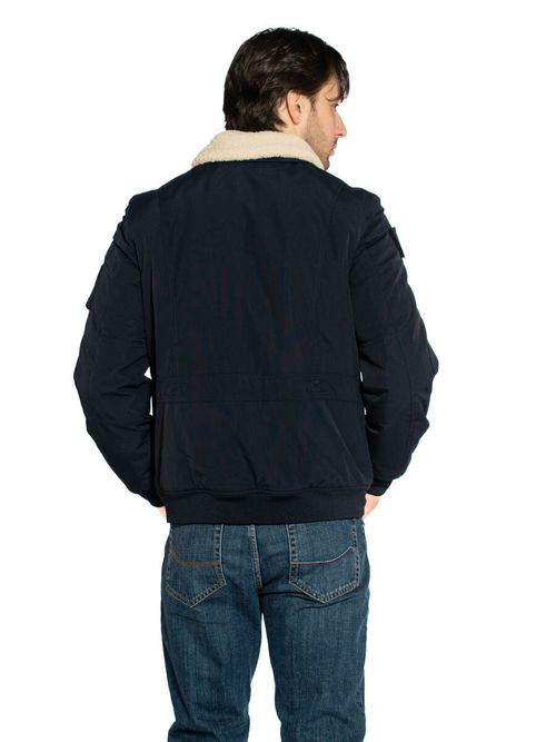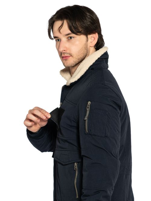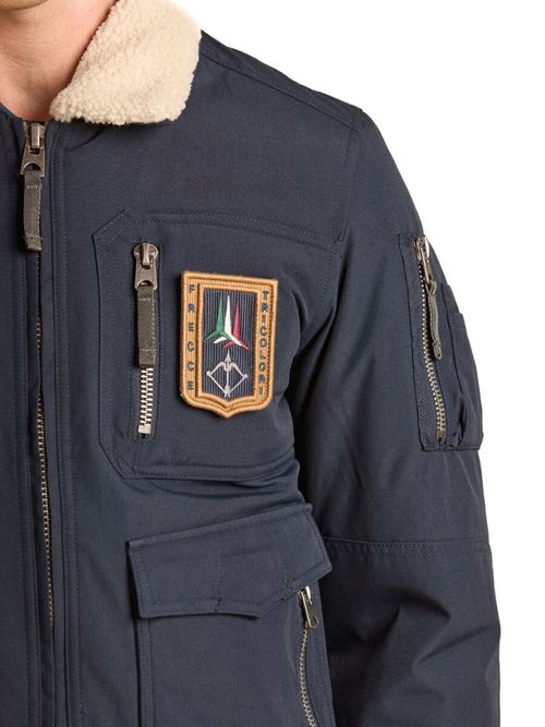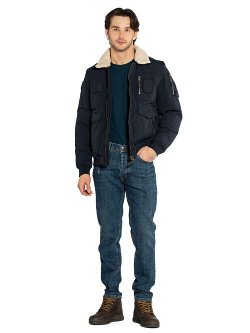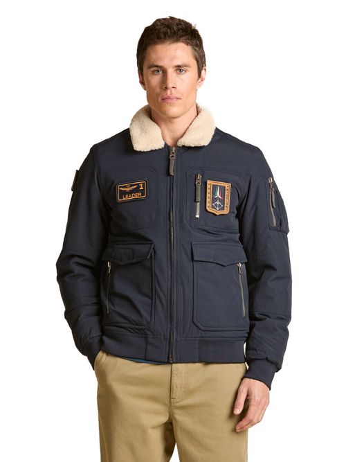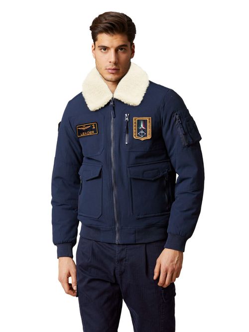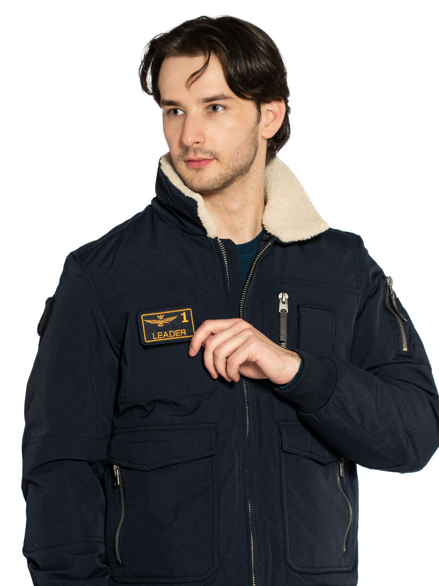 Куртка мужская Aeronautica Militare AB3024. Утепленная куртка фирменного дизайна Pilot со съемным воротником из искусственного меха. Модель отшита из непродуваемого прочного нейлона. Куртка классического кроя бомбер застегивается на молнию, манжеты и отделка по низу имеют ребристый дизайн. Двойные передние карманы дополнены клапанами, на груди и рукаве карманы на молнии. Внутри два кармана. Завершает дизайн комплект съемных фирменных шевронов. Зимняя версия культовой куртки бренда. Состав: 100% полиамид. Воротник: 100% полиэстер. Подкладка: 100% полиамид. Утеплитель: 100% полиэстер. Цвет Midnight Blue: темно-синий. Страна бренда: Италия. Страна производства: Бангладеш.