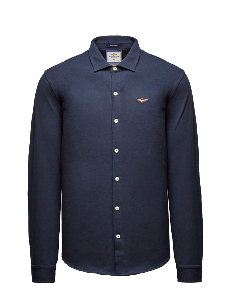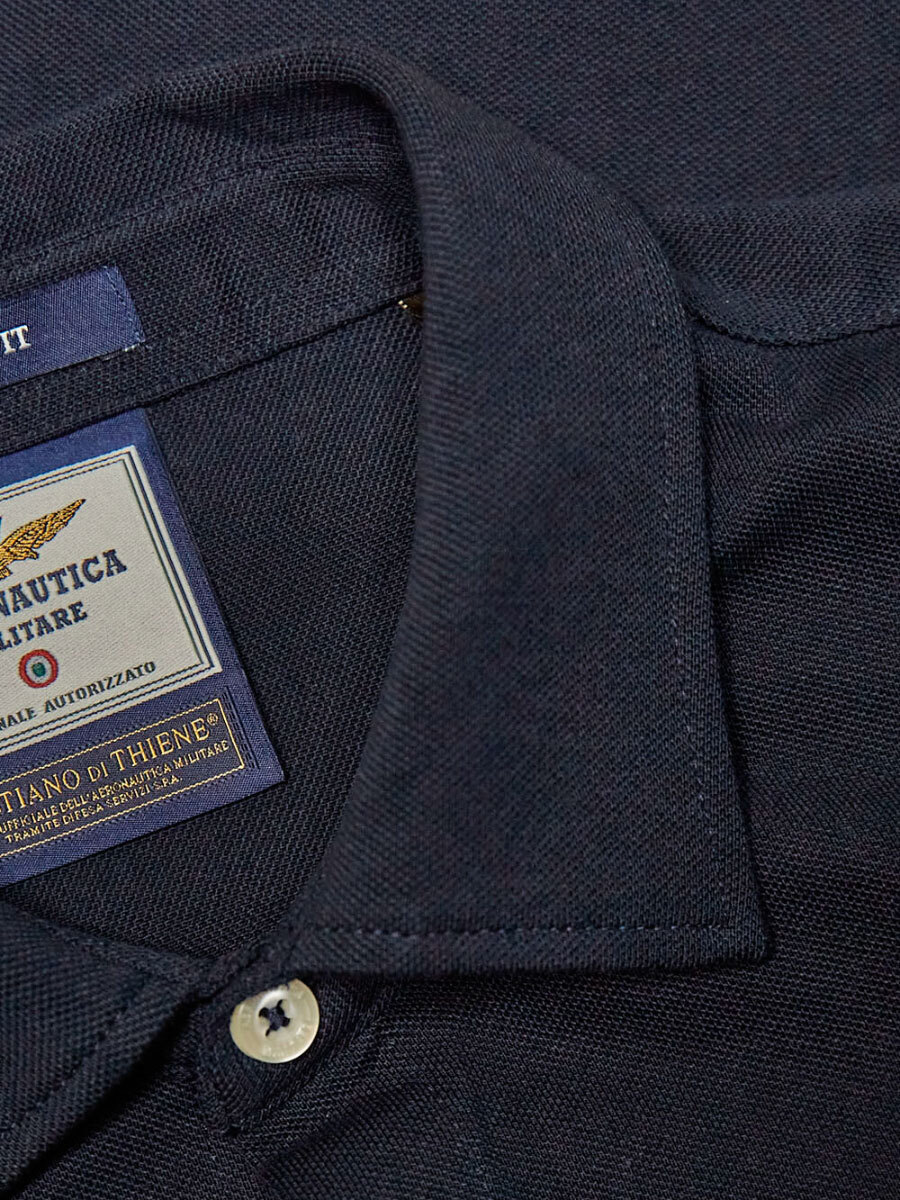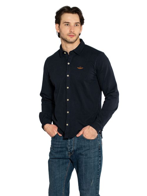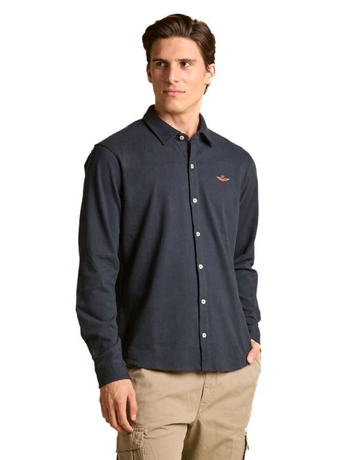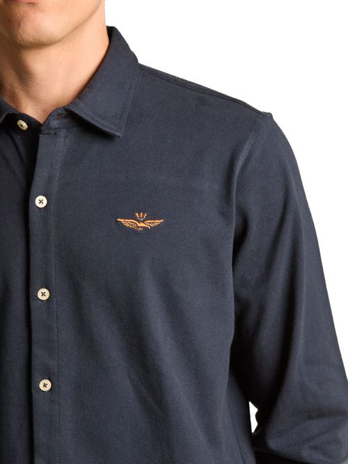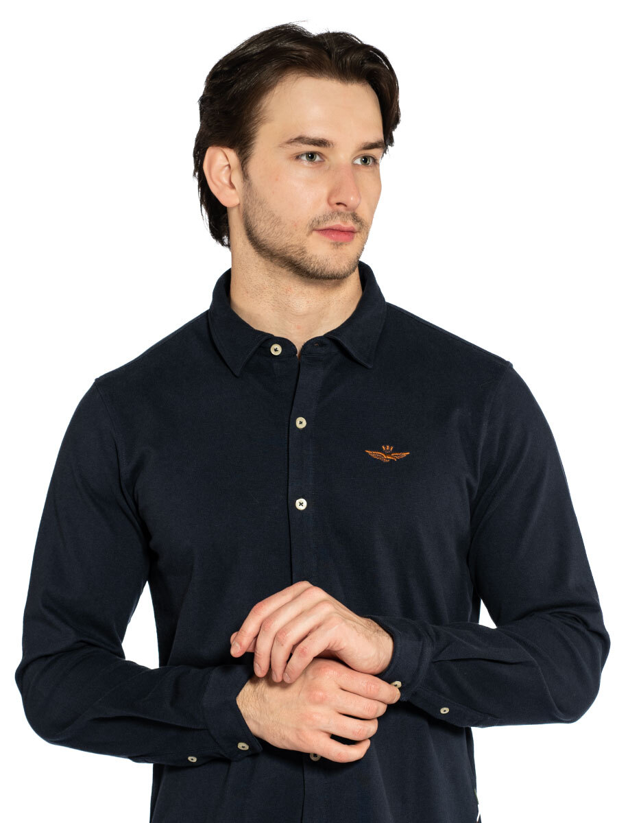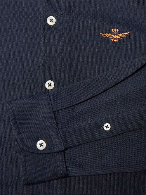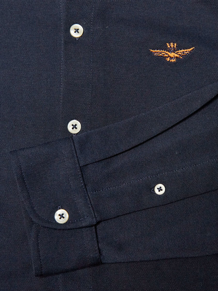 Рубашка мужская Aeronautica Militare CA1265. Рубашка лаконичного дизайна отшита из премиального мягкого хлопка со структурой пике. Модель застегивается на пуговицы, имеет длинные рукава с манжетами на пуговицах. На груди вышит символ итальянского бренда - орел. Универсальная рубашка, сочетающая повседневный комфорт и фирменный стиль. Состав: 95% хлопок, 5% эластан. Цвет Blu Navy: темно-синий. Страна бренда: Италия. Страна производства: Бангладеш.