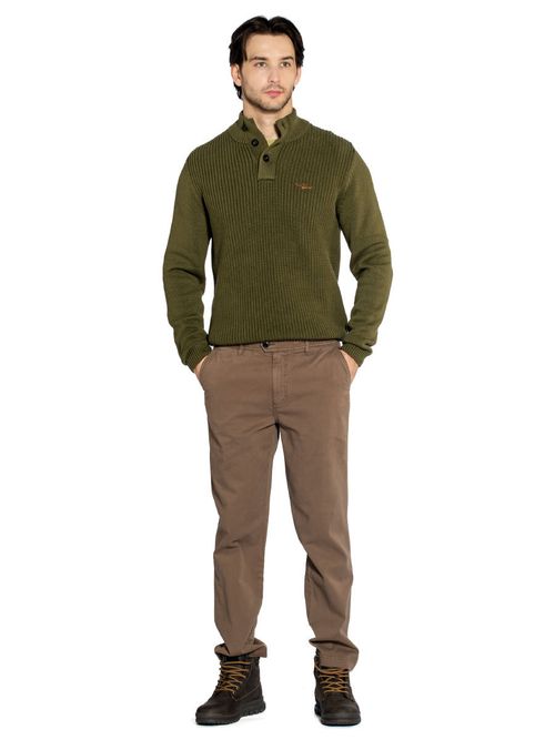 Брюки мужские Aeronautica Militare PA1692. Классические брюки чинос имеют приятную структуру за счет плотного эластичного габардина, окрашенного в готовом виде. Этот комфортный материал имеет красивую диагональную структуру переплетения волокон и отличается высоким уровнем износостойкости. На брюках два наклонных боковых кармана с карманом для монет и два задних кармана под клапанами. Универсальный выбор для самых разных случаев. Состав: 98% хлопок, 2% эластан. Цвет Chocolate Chip: шоколад. Страна бренда: Италия. Страна производства: Индия.