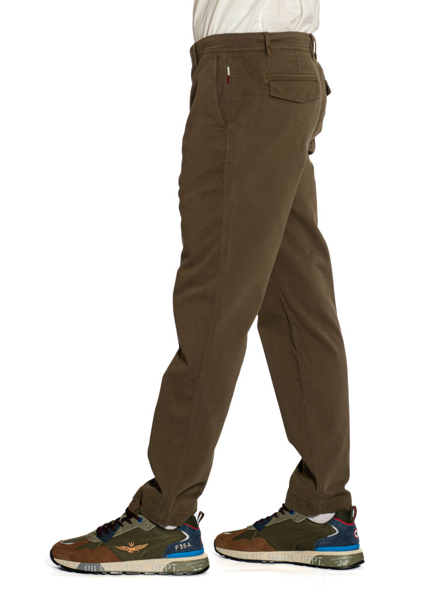 Брюки мужские Aeronautica Militare PA1692. Классические брюки чинос имеют приятную структуру за счет плотного эластичного габардина, окрашенного в готовом виде. Этот комфортный материал имеет красивую диагональную структуру переплетения волокон и отличается высоким уровнем износостойкости. На брюках два наклонных боковых кармана с карманом для монет и два задних кармана под клапанами. Универсальный выбор для самых разных случаев. Состав: 98% хлопок, 2% эластан. Цвет Dark Olive: темно-оливковый. Страна бренда: Италия. Страна производства: Индия.