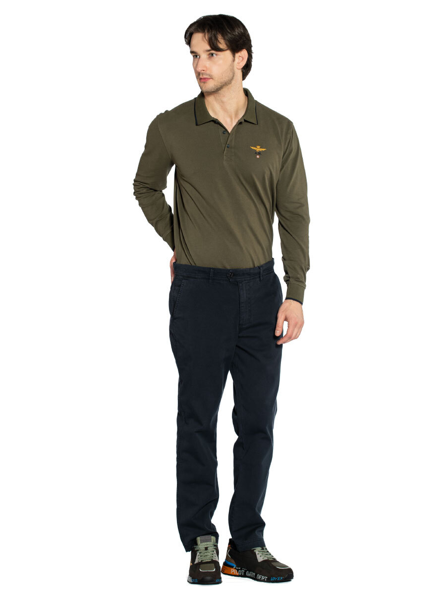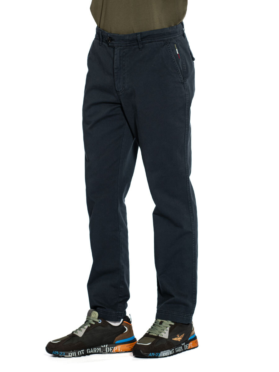 Брюки мужские Aeronautica Militare PA1692. Классические брюки чинос имеют приятную структуру за счет плотного эластичного габардина, окрашенного в готовом виде. Этот комфортный материал имеет красивую диагональную структуру переплетения волокон и отличается высоким уровнем износостойкости. На брюках два наклонных боковых кармана с карманом для монет и два задних кармана под клапанами. Универсальный выбор для самых разных случаев. Состав: 98% хлопок, 2% эластан. Цвет Blu Navy: темно-синий. Страна бренда: Италия. Страна производства: Индия.