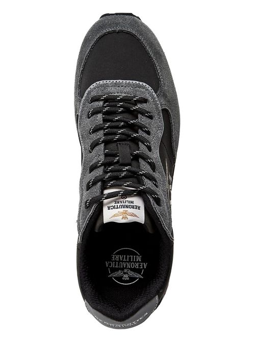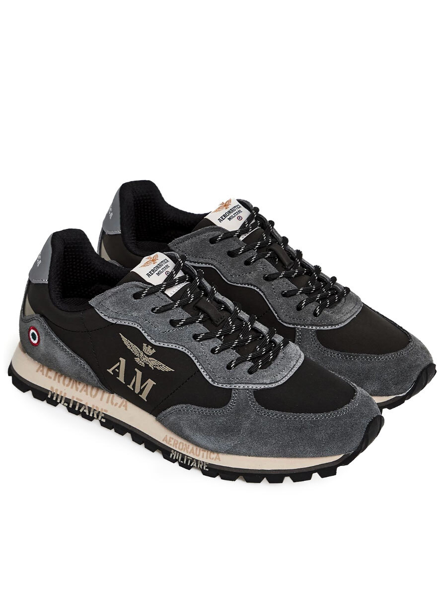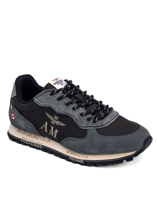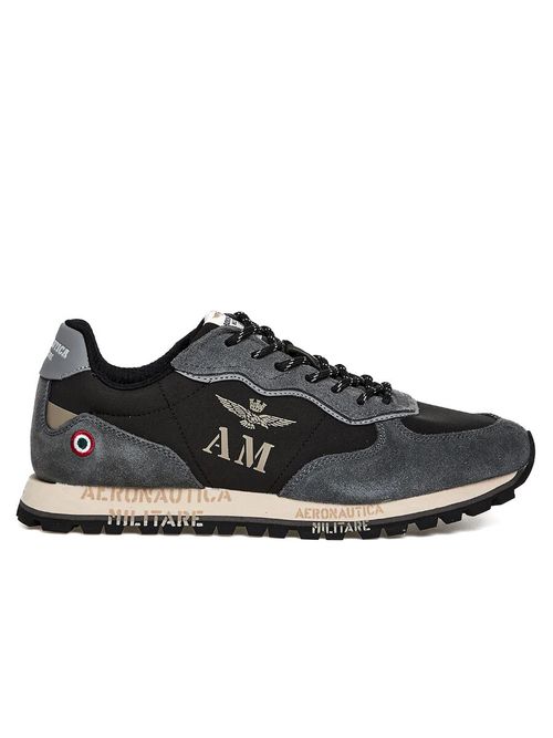 Кроссовки мужские Aeronautica Militare SC0320. Стильные кроссовки выполнены из замши со вставками из плотного нейлонового текстиля. Обувь имеет эргономическую стельку, которая обеспечивает поддержку и комфорт. Кроссовки выполнены с двухцветной шнуровкой, на язычке фирменная нашивка. Пятка усилена вставкой с нанесенным логотипом. Обувь оформлена рифленой резиновой подошвой, на которую нанесен фирменный принт. Завершают дизайн вышитые и принтованные элементы в стиле Аэронавтика Милитари на внешней стороне. Верх: 45% кожа, 45% полиэстер, 10% полиуретан. Подкладка: 100% полиэстер. Подошва: 80% ЭВА, 20% термопластичная резина. Цвет Jet Black: черный и серый. Страна бренда: Италия. Страна производства: Китай.