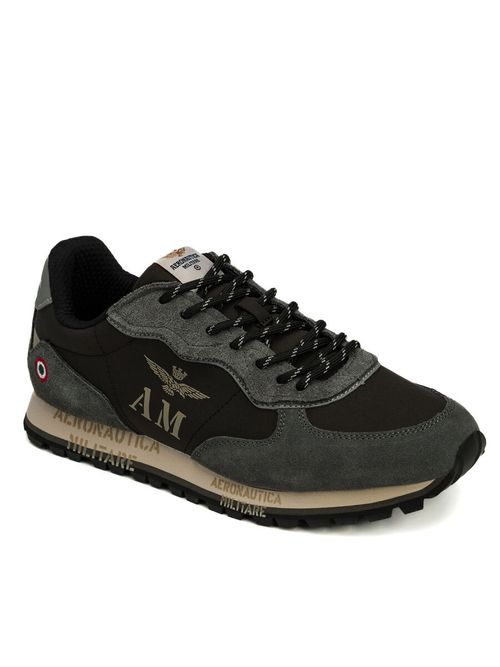 Кроссовки мужские Aeronautica Militare SC0320. Стильные кроссовки выполнены из замши со вставками из плотного нейлонового текстиля. Обувь имеет эргономическую стельку, которая обеспечивает поддержку и комфорт. Кроссовки выполнены с двухцветной шнуровкой, на язычке фирменная нашивка. Пятка усилена вставкой с нанесенным логотипом. Обувь оформлена рифленой резиновой подошвой, на которую нанесен фирменный принт. Завершает дизайн вышитые и принтованные элементы в стиле Аэронавтика Милитари на внешней стороне. Верх: 45% кожа, 45% полиэстер, 10% полиуретан. Подкладка: 100% полиэстер. Подошва: 80% ЭВА, 20% термопластичная резина. Цвет Jet Black: черный и серый. Страна бренда: Италия. Страна производства: Китай.