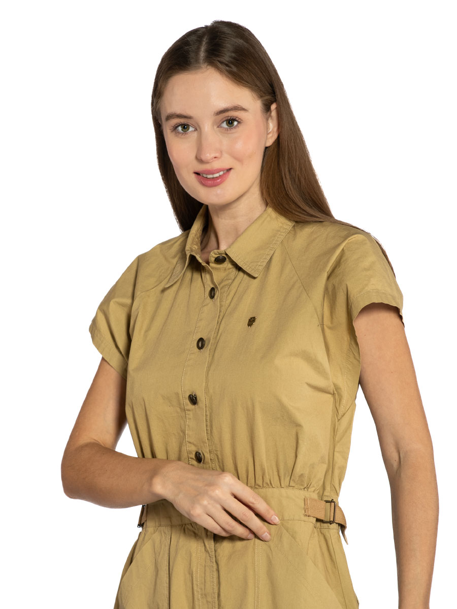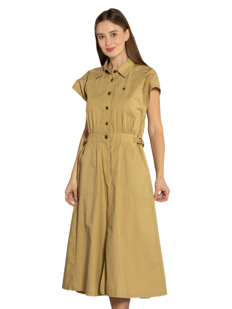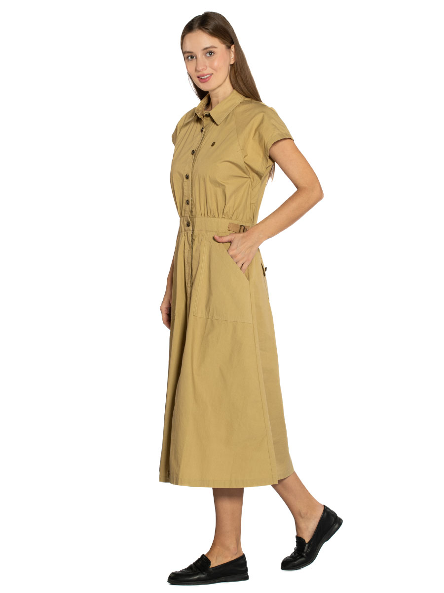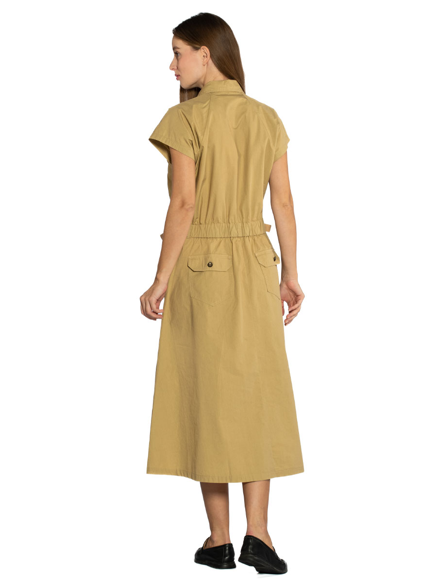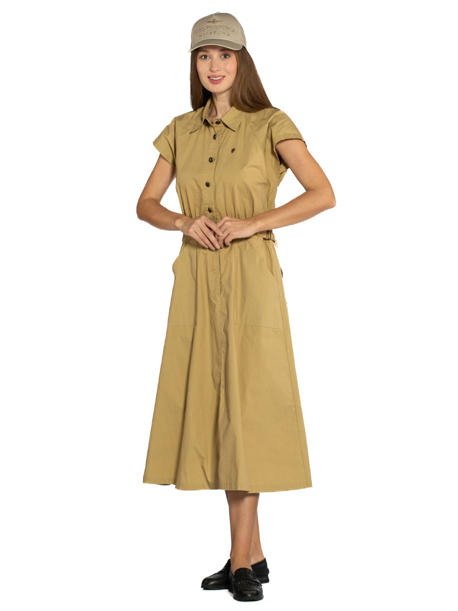 Платье Aeronautica Militare VE101D. Платье миди с короткими рукавами реглан выполнено из гладкого хлопкового поплина. Верх рубашечного кроя с отложным воротником и застежкой на пуговицы, приталенный силуэт подчеркнут поясом-кулиской на талии. На изделии четыре накладных кармана: задние с клапанами на кнопке и боковые для рук. Универсальный вариант в стиле Аэронавтика Милитари для города и отдыха. Состав: 100% хлопок. Цвет Safari: сафари. Страна бренда: Италия. Страна производства: Италия.