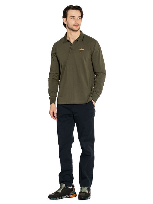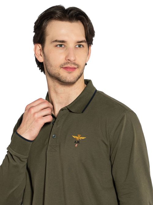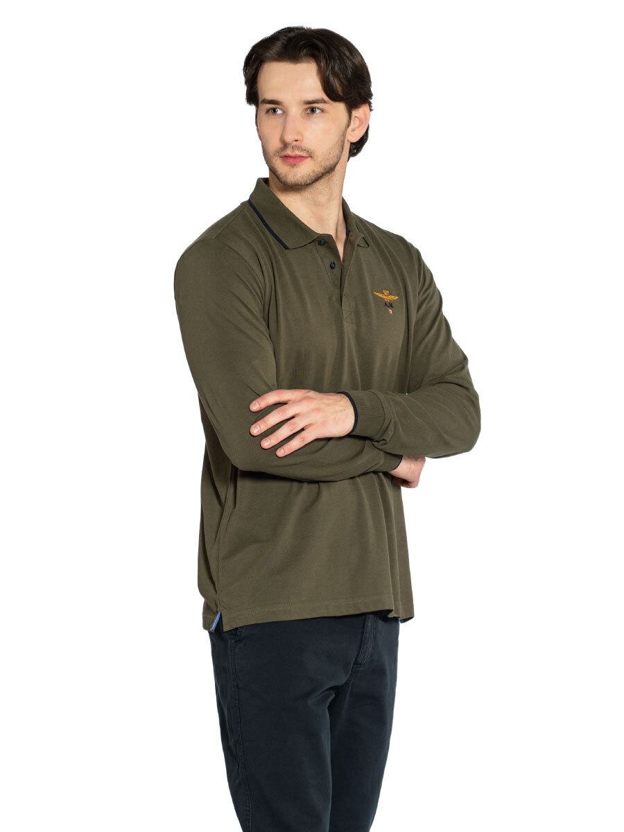 Поло мужское Aeronautica Militare PO1653. Поло с длинными рукавами отшито из традиционного хлопка-пике. Модель выполнена с планкой на три пуговицы, есть боковые шлицы для хорошей посадки. Ребристый воротник и манжеты декорированы узкой полоской по краю. На груди вышит фирменный логотип. Универсальную рубашку-поло легко сочетать с любыми предметами гардероба. Состав: 100% хлопок. Цвет Verde Scuro: темно-зеленый. Страна бренда: Италия. Страна производства: Турция.