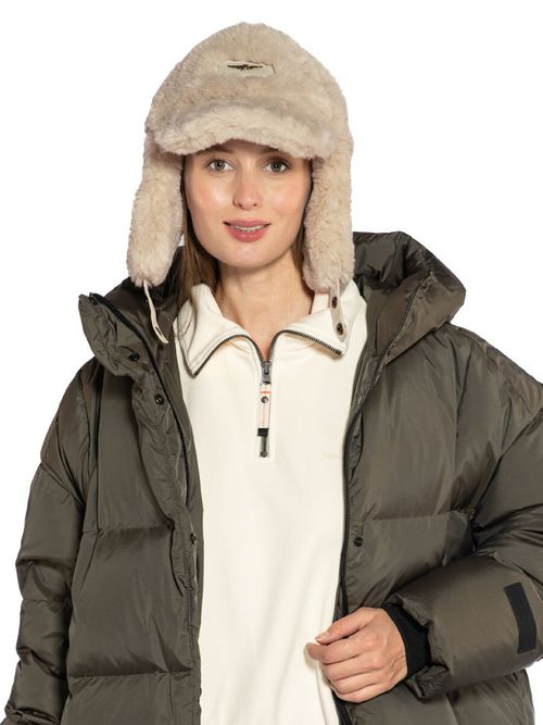 Шапка женская Aeronautica Militare HA1190D. Шапка-ушанка в стиле авиатор выполнена из мягкого искусственного меха. Модель оснащена регулируемым ремешком и застежкой на две кнопки. На шапке вставка из эко-кожи с металлической эмблемой бренда. Стильное дополнение к любому образу в холодный сезон. Состав: 100% полиэстер. Цвет Vaniglia: ваниль. Страна бренда: Италия. Страна производства: Китай.