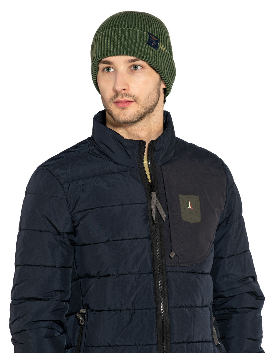 Шапка мужская Aeronautica Militare CU0084. Хлопковая шапка универсальной формы, связанная фактурной английской резинкой. Шапка комфортно облегает голову, переплетение в рубчик помогает головному убору держать форму. Премиальный хлопок обработан с целью придания изделию винтажного эффекта. Глубина посадки регулируется отворотом. Отворот декорирован патчем с фирменным логотипом. Состав: 100% хлопок. Цвет Verdant Green: зеленый. Страна бренда: Италия. Страна производства: Китай.