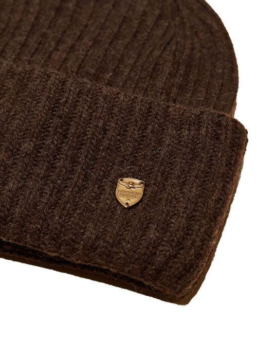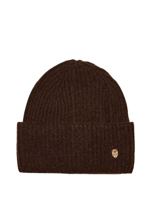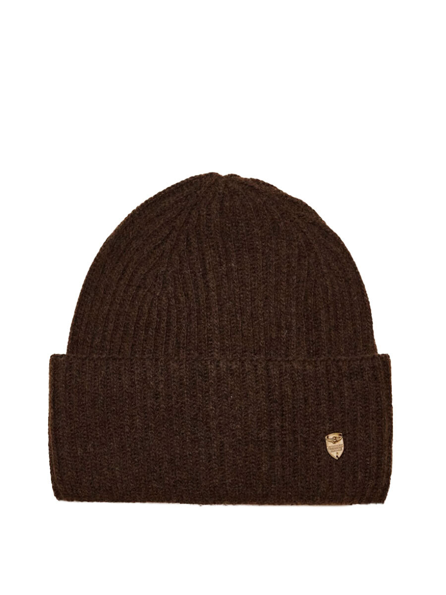 Шапка женская Aeronautica Militare CU0056D. Комфортная шапка ребристой вязки с отворотом. Мягкий тактильный трикотаж выполнен на основе шерсти, вискозы и кашемира. На отвороте металлическая пластина с фирменным логотипом. Стильное дополнение к зимним образам. Состав: 35% вискоза, 35% полиамид, 20% шерсть, 10% кашемир. Цвет Cioccolato: шоколад. Страна бренда: Италия. Страна производства: Италия.