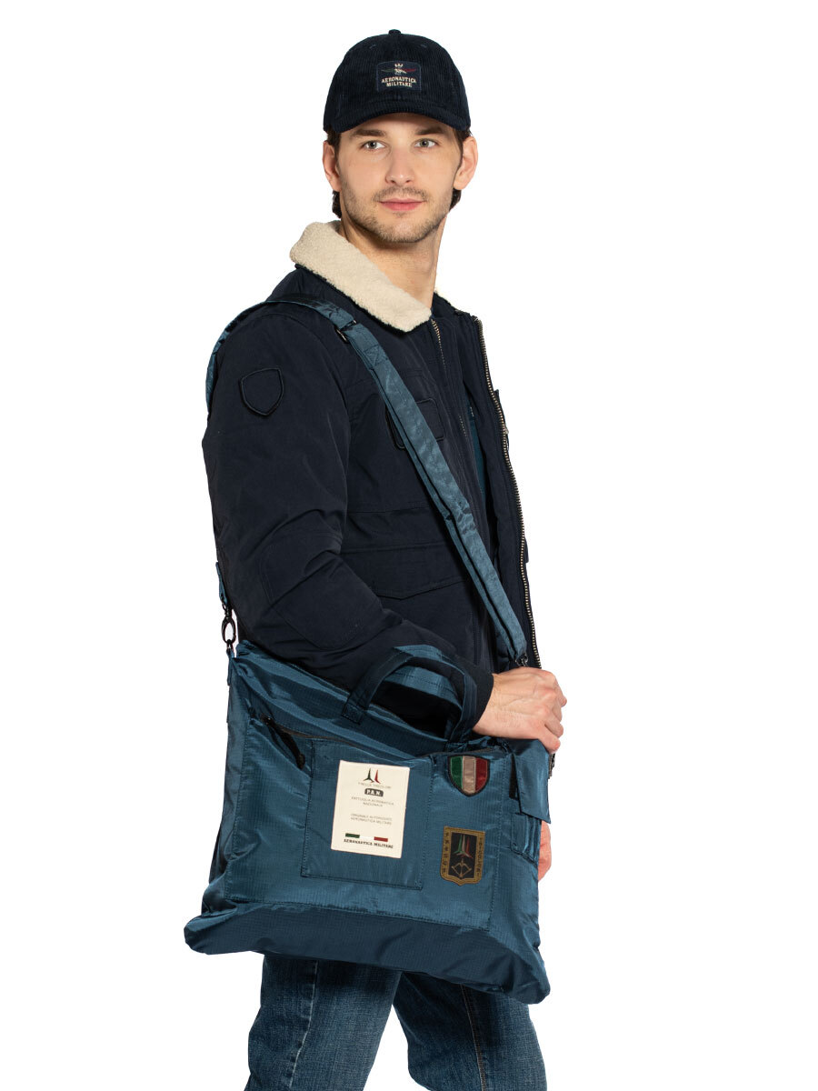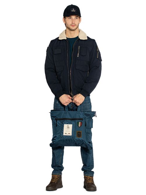 Сумка Aeronautica Militare BO0612. Сумка выполнена из прочного непромокаемого нейлона с усилением рипстоп. Модель имеет уникальный дизайн благодаря нашивкам и эмблемам с айдентикой итальянского бренда. Изделие с одним отделением на молнии можно носить как сумку для переноски или как наплечную сумку на съемном регулируемом ремне. Сумка дополнена внешними карманами на кнопках и на молнии и внутренними отсеками. Яркий удобный аксессуар для города и путешествий. Размеры: 48х44 см. Состав: 100% полиамид. Подкладка: 100% полиамид. Цвет Blu Navy: темно-синий. Страна бренда: Италия. Страна производства: Китай.