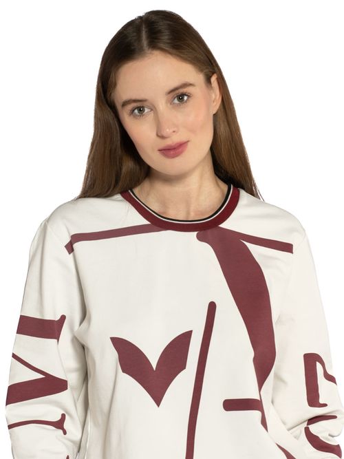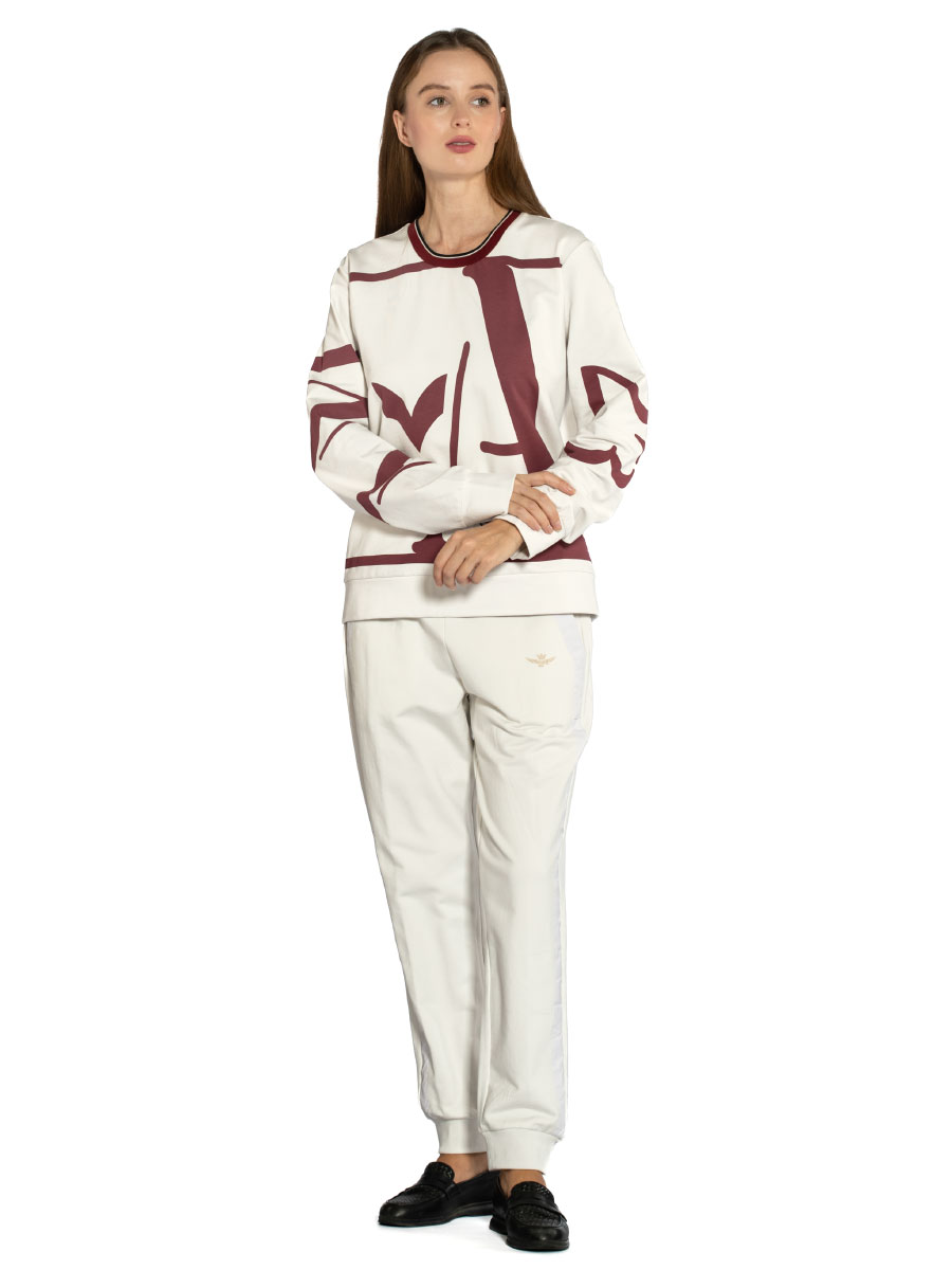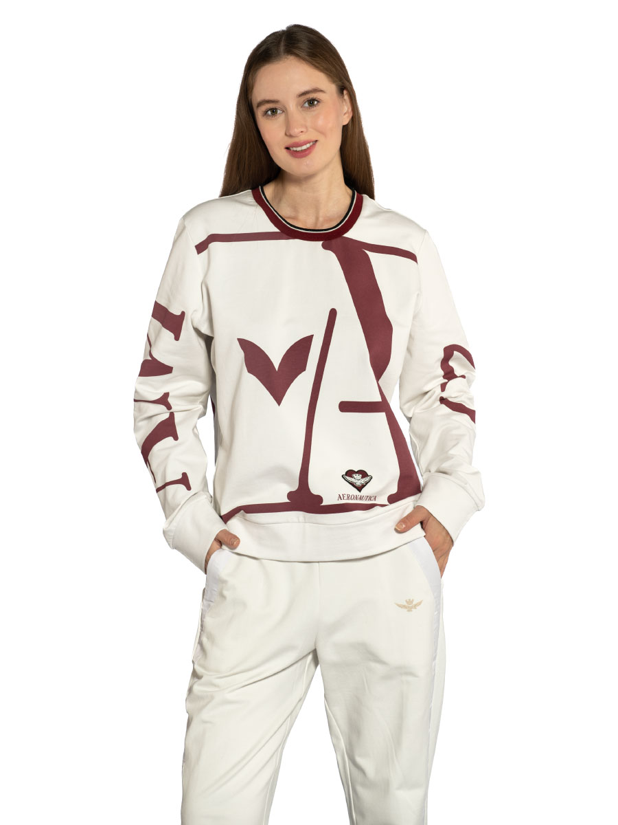 Толстовка женская Aeronautica Militare FE1961D. Эффектная толстовка выполнена из мягкого хлопка с небольшим добавлением стрейчевых волокон. Комфортный трикотаж имеет приятный к телу начес. Свитшот украшен ярким принтом АМ 23 и нашивкой с символом итальянского бренда. Состав: 95% хлопок, 5% эластан. Цвет Onice: оникс. Страна бренда: Италия. Страна производства: Турция.
