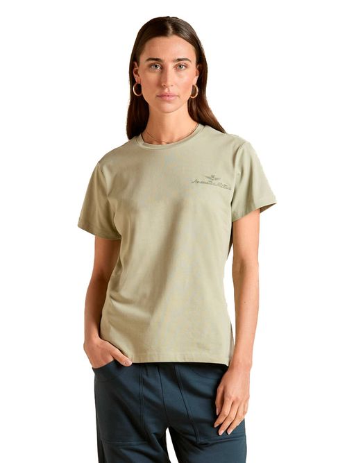 Футболка женская Aeronautica Militare TS2490D. Футболка с короткими рукавами и круглым вырезом выполнена из мягкого джерси на основе отборного хлопка. Эластичный хлопковый материал - мягкий, дышащий и упругий, обеспечивающий хорошую посадку и комфортный для тела микроклимат. Стильная лаконичная футболка украшена деликатной вышивкой: фирменным логотипом и орлом - символом итальянского бренда. Состав: 94% хлопок, 6% эластан. Цвет Verde Salvia: шалфей. Страна бренда: Италия. Страна производства: Албания.