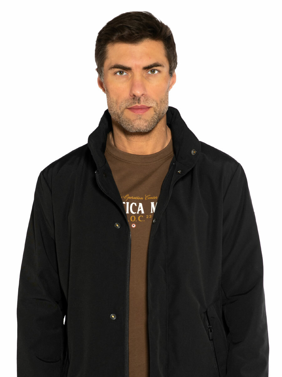 Куртка мужской Igor Plaxa AA31010. Лаконичная куртка прямого кроя в городском стиле. Модель выполнена из прочной смесовой ткани, обеспечивающей защиту от ветра. Центральная двухзамковая молния имеет ветрозащитную планку с потайными кнопками. Высокий воротник-стойка дополнен скрытым внутри капюшоном. На изделии два боковых кармана с планками на молниях. Внутри - два нагрудных кармана на кнопке. Комфортная куртка-ветровка на прохладную погоду. Состав: 83% полиэстер, 17% хлопок. Подкладка: 100% полиэстер. Цвет: черный. Страна производства: Россия.
