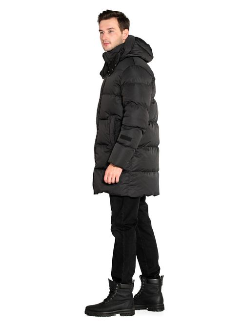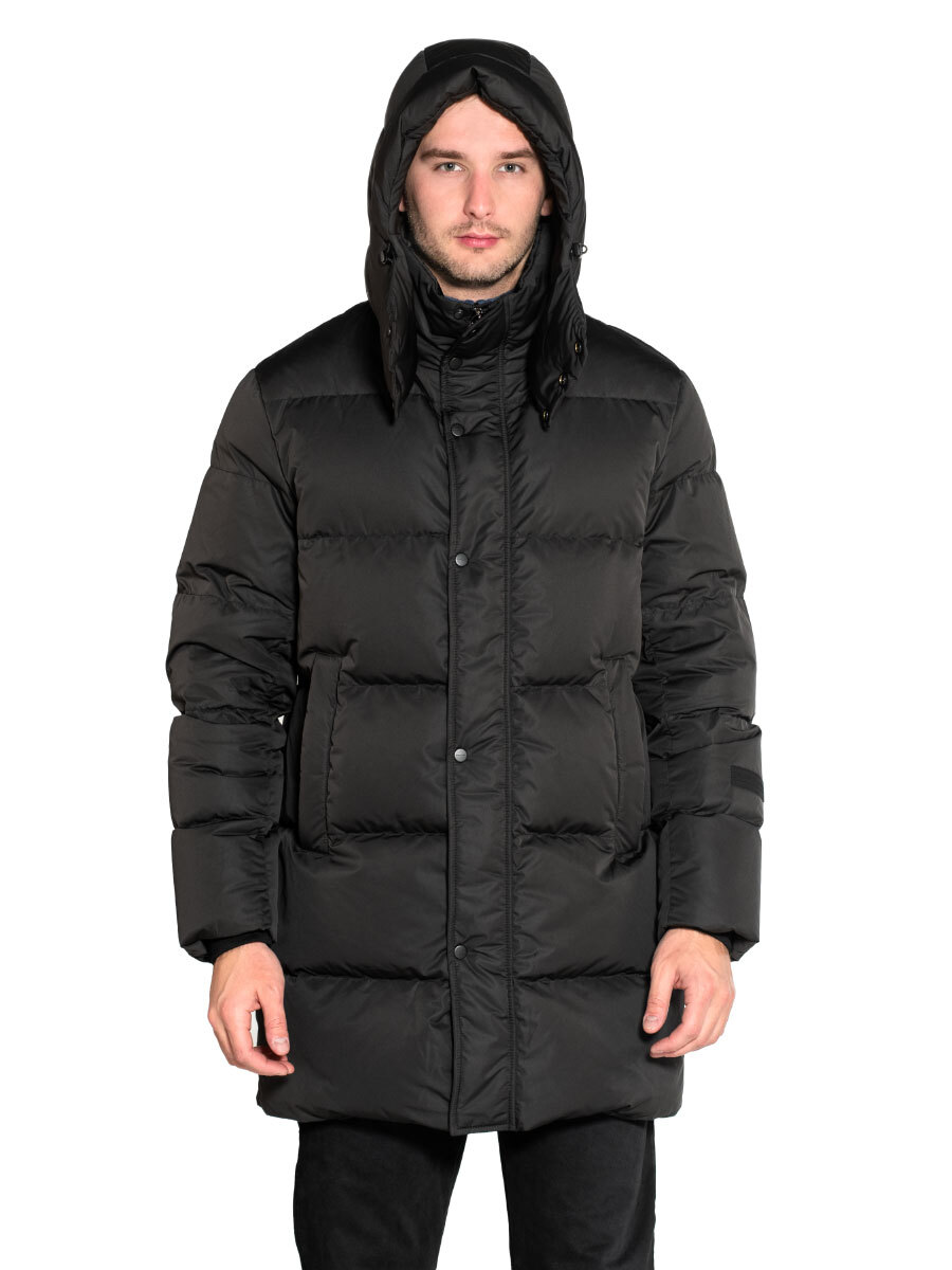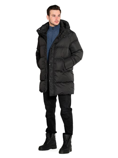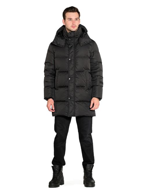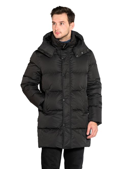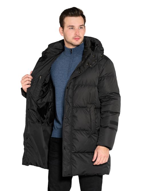 Пуховик мужской Igor Plaxa AA93210. Удлиненная пуховая куртка прямого кроя с горизонтальной прострочкой. Центральная двухзамковая молния закрыта ветрозащитной планкой с брендированными кнопками. Высокий воротник-стойка дополнен съемным капюшоном на кнопках, ширина которого регулируется лицевой утяжкой. Теплый капюшон с широкими клапанами надежно защищает голову и шею от ветра и снега. Дополнительные функциональные детали: мягкие трикотажные манжеты в рукавах, два теплых боковых кармана на молнии и два внутренних кармана на молнии. На рукаве куртки - фирменный логотип компании. Прочный высококачественный материал с водоотталкивающей пропиткой легко очистить от загрязнений. Внутри куртки натуральный пуховый наполнитель с антиаллергенной обработкой и технологией Down Proof для придания ему влагостойких свойств. Состав: 100% полиэстер. Подкладка: 100% полиамид. Наполнитель: 90% пух, 10% перо. Цвет: черный. Страна производства: Россия.