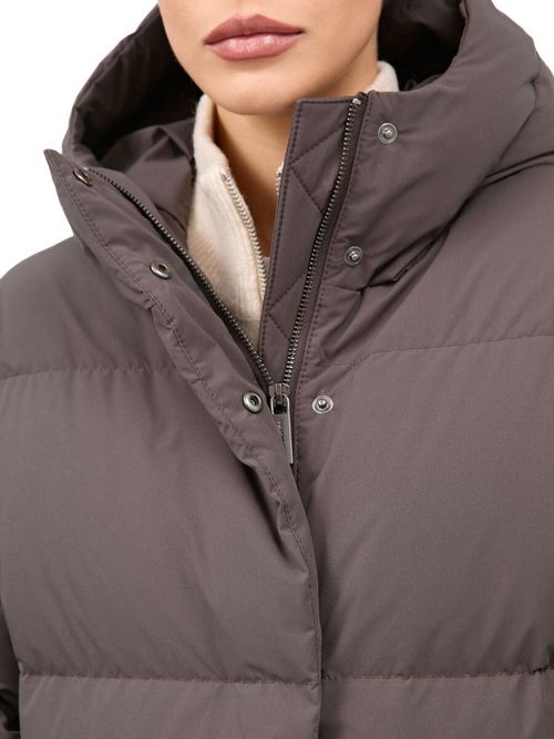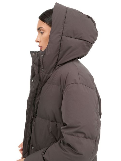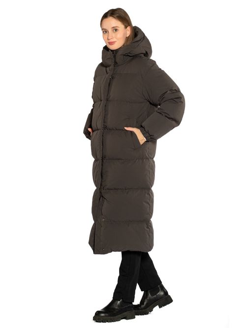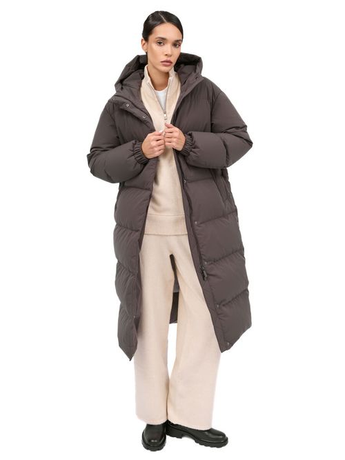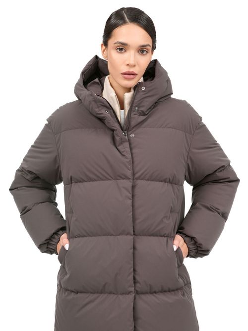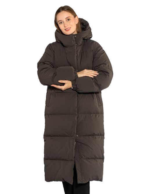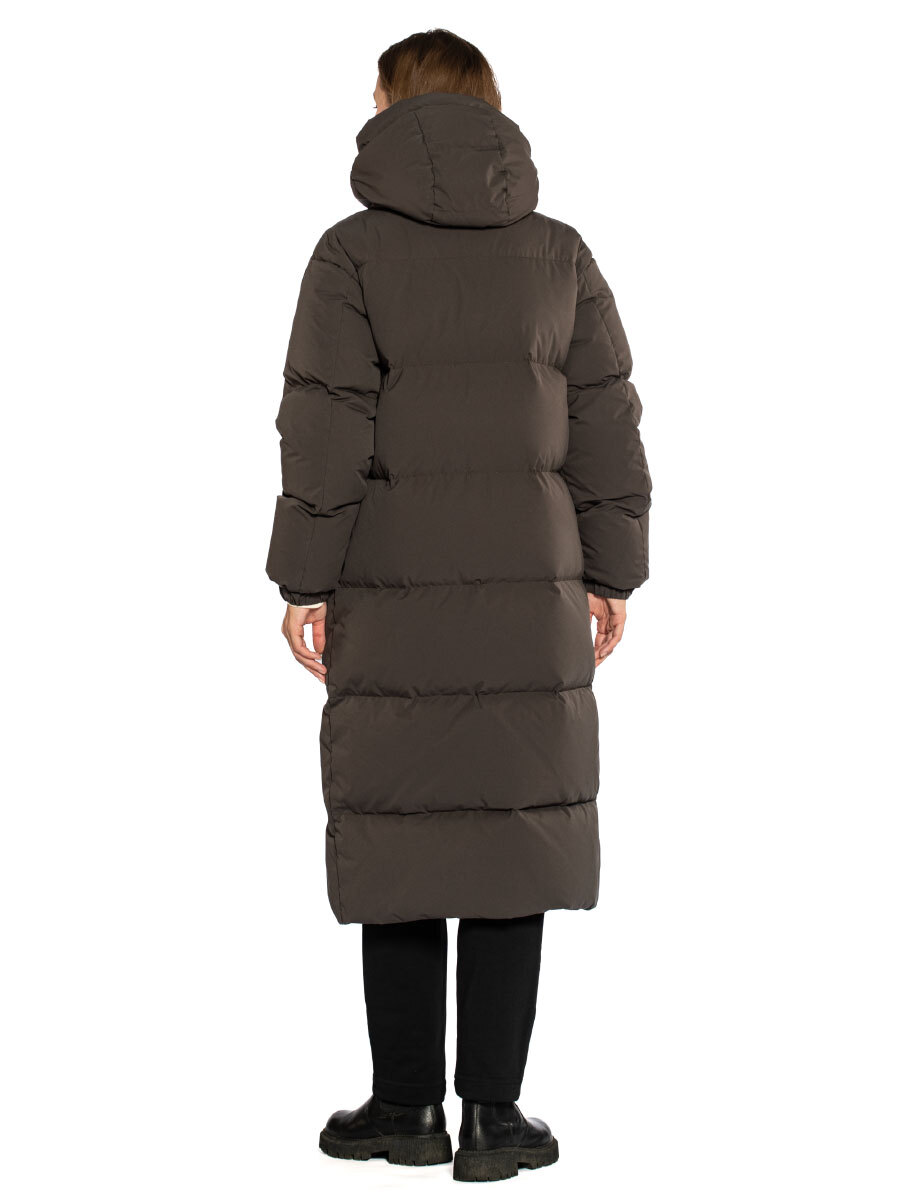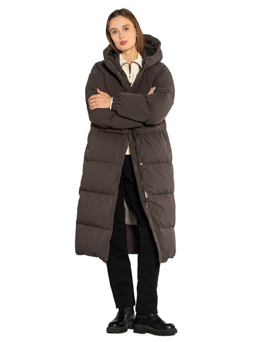 Пуховик женский Igor Plaxa BA91950. Длинное пальто прямого силуэта лаконичного дизайна с горизонтальной прострочкой. Внешняя ткань - прочный матовый материал с плетением волокон Stretch, которое уменьшает сминаемость изделия. Входящая в состав материала мультифиламентная нить с водоотталкивающей пропиткой повышает устойчивость к неблагоприятным погодным условиям. Пуховик застегивается на двухзамковую молнию и кнопки, закрытые цельнокроеной ветрозащитной планкой. Модель выполнена с высоким воротником, переходящим в несъемный утепленный капюшон. Большие теплые карманы закрыты планкой на кнопке, внутри пуховика два кармана на молнии. В манжеты рукавов вшита эластичная резинка, защищающая от задувания ветра. Функциональное элегантное пальто в городском стиле, наполненное отборной пуховой смесью. Состав: 100% полиэстер. Подкладка: 100% полиэстер. Наполнитель: 90% пух, 10% перо. Цвет: коричневый. Страна производства: Россия.