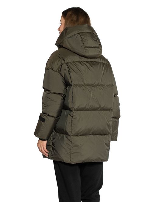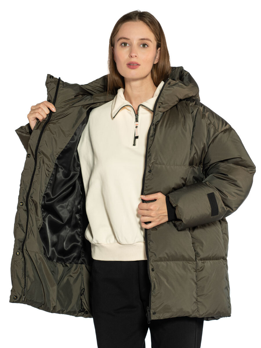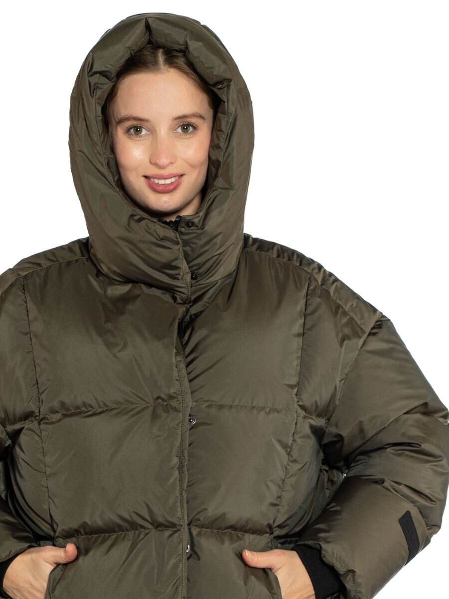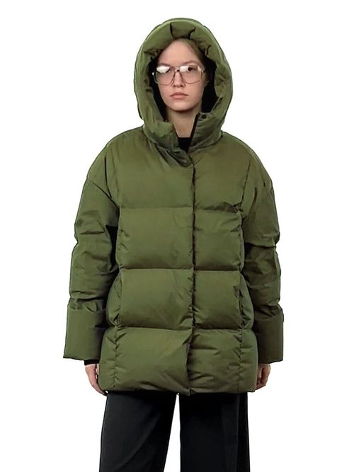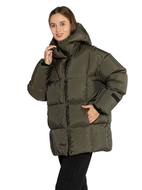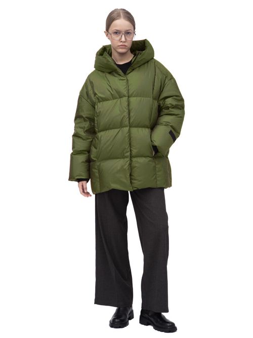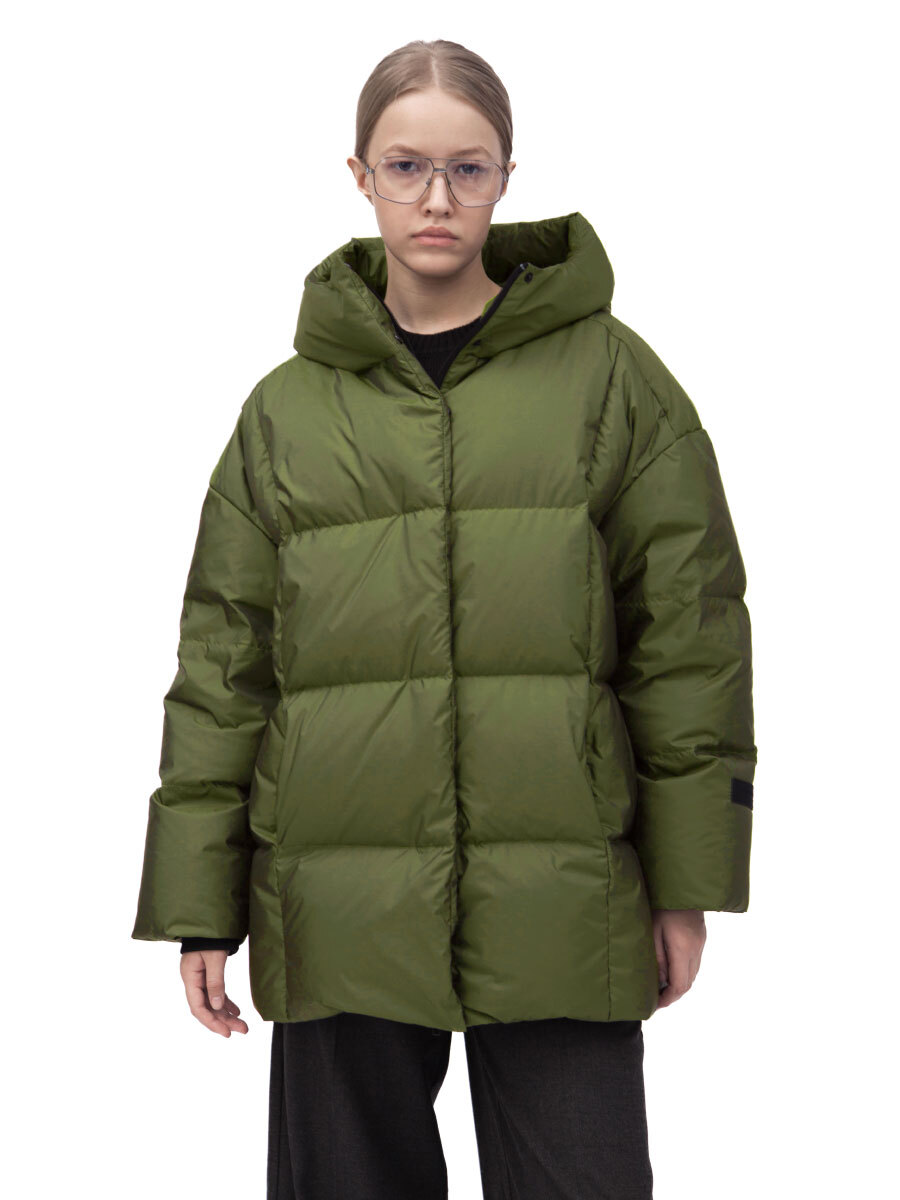 Пуховик женский Igor Plaxa BA92131. Универсальная пуховая куртка свободного силуэта со спущенной линией плеча. Внешний водоотталкивающий и ветрозащитный материал сделан из гладкого шелковистого нейлона и прочного износостойкого полиэстера. Центральная двухзамковая молния имеет цельнокроеную ветрозащитную планку с кнопками. Высокий воротник-стойка переходит в утепленный фиксированный капюшон. В рельефных швах спрятаны два теплых кармана. В рукавах мягкие трикотажные манжеты. Эффектный функциональный пуховик имеет пуходержащую подкладку и наполнен отборной пуховой смесью. Состав: 52% нейлон, 48% полиэстер. Подкладка: 100% полиэстер. Наполнитель: 90% пух, 10% перо. Цвет: зеленый. Страна производства: Россия.