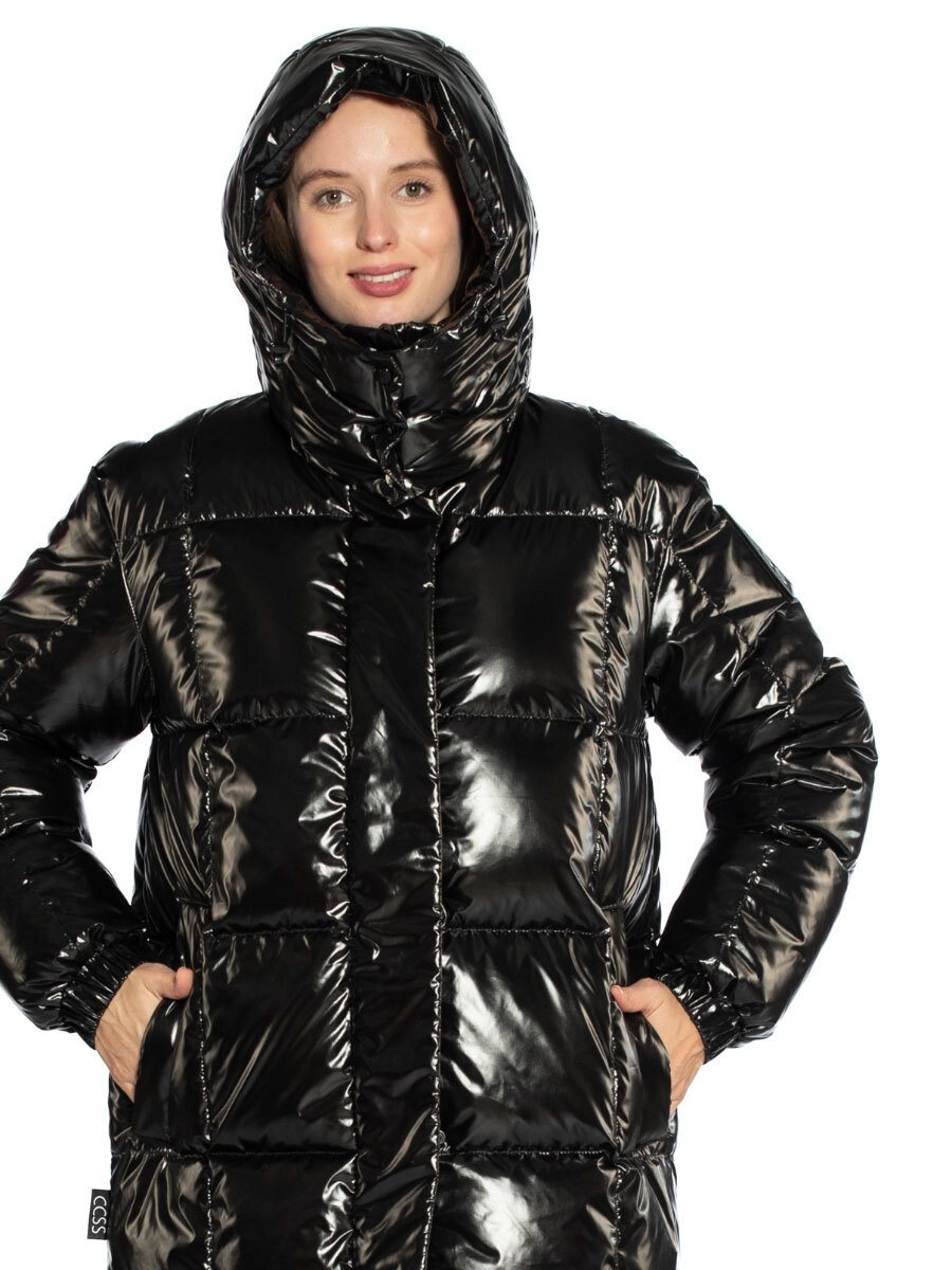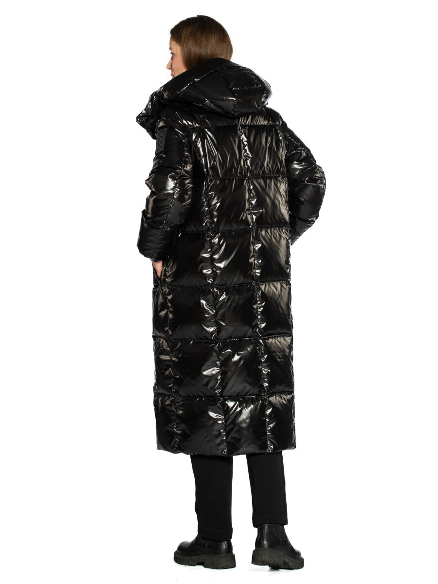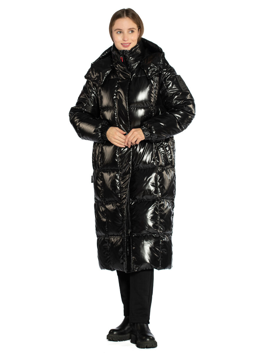 Пуховик женский Igor Plaxa DA90510. Эффектное пуховое пальто из линейки Accross, представляющей одежду в стиле спорт-шик. Пуховик прямого силуэта свободного кроя дополнен стежкой в форме квадратов. Центральная двухзамковая молния закрыта ветрозащитной планкой с кнопками. Предусмотрена защита подбородка от соприкосновения с замком молнии. Утепленный капюшон пристегивается на кнопки и регулируется по лицевому срезу утяжкой. Высокий воротник-стойка и дополнительная застежка на капюшоне надежно защищает нижнюю часть лица и шею в ветреную и морозную погоду. Большие теплые карманы на молнии закрыты планкой на кнопке. Внутри куртки два кармана на молнии. В манжеты рукавов вшита резинка, защищающая от задувания ветра. Завершает дизайн съемный патч на рукаве с айдентикой бренда. Пуховик выполнен из современного блестящего материала с водоотталкивающей пропиткой, имеет яркую пуходержащую подкладку и наполнен отборной пуховой смесью. Состав: 100% полиэстер. Подкладка: 100% полиэстер. Наполнитель: 90% пух, 10% перо. Цвет: черный. Страна производства: Россия.