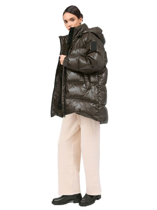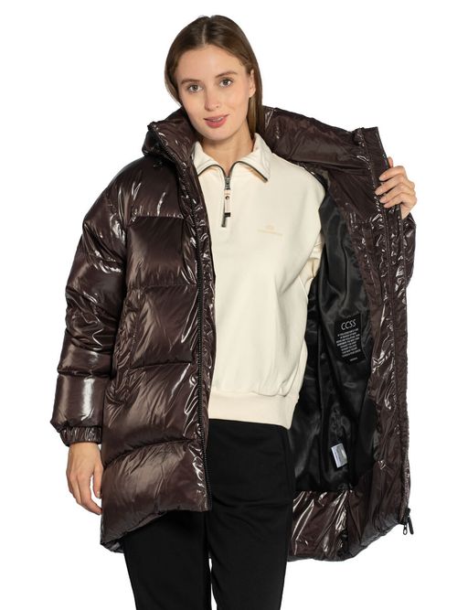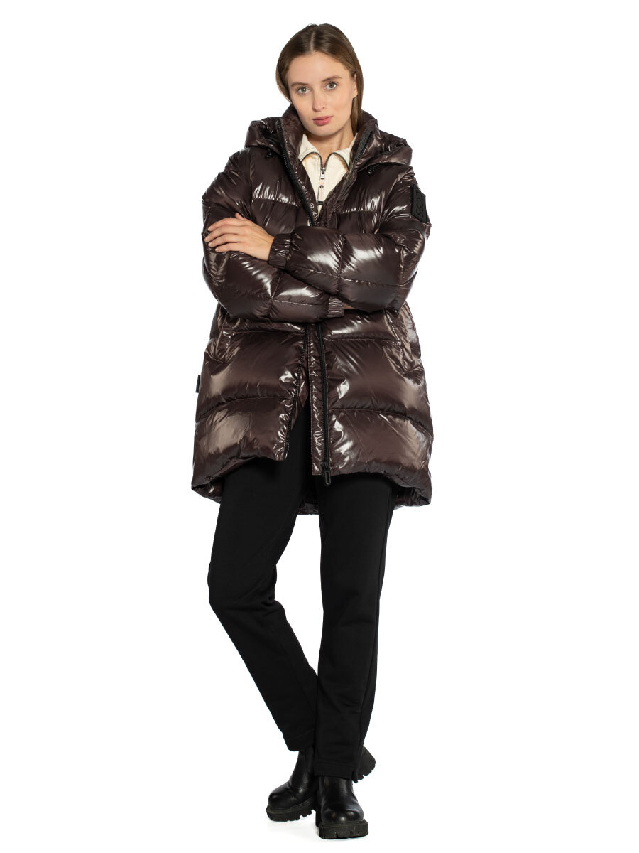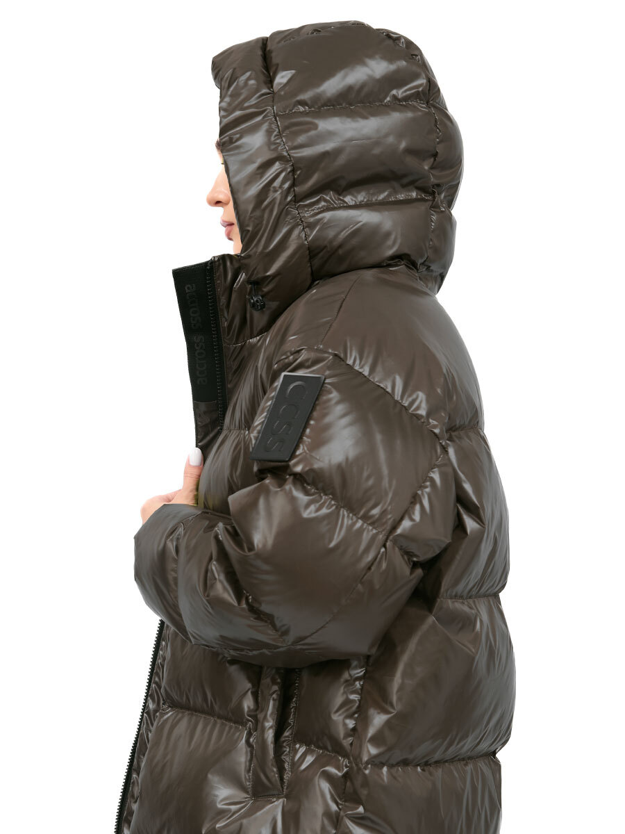 Пуховик женский Igor Plaxa DA91650. Пуховик прямого кроя со спущенной линией плеча представляет линейку Accross функциональной одежды в городском стиле и стиле спорт-шик. Эффектный внешний материал имеет мультифиламентную нить с водоотталкивающей пропиткой, которая повышает устойчивость ткани к неблагоприятным погодным условиям. Центральная двухзамковая молния выполнена с внутренней ветрозащитной планкой и нашивкой Accross. Высокий воротник-стойка дополнен регулируемым капюшоном. Пуховик отшит с удлиненной спинкой, а кулиска по нижнему краю помогает сформировать О-силуэт. Два теплых кармана закрыты планками. Внутри куртки два кармана на молнии. В манжеты рукавов вшита эластичная резинка, защищающая от снега и ветра. Завершает дизайн съемный брендированный патч на рукаве. Функциональная пуховая куртка в городском стиле, наполненная отборной пуховой смесью. Состав: 100% полиэстер. Подкладка: 100% полиэстер. Наполнитель: 90% пух, 10% перо. Цвет: коричневый. Страна производства: Россия.