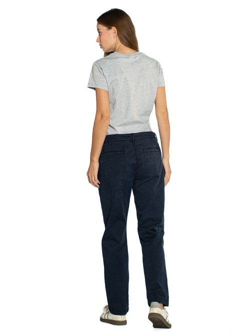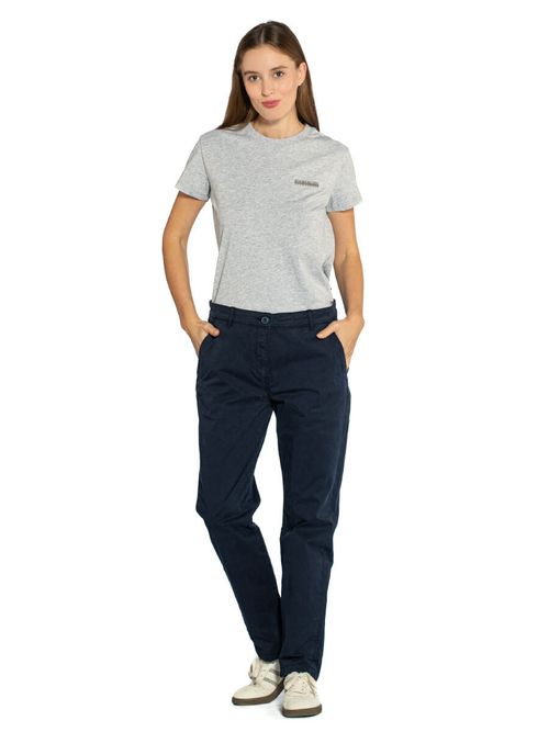 Брюки женские Napapijri Meridian 5. Брюки чинос прямого кроя средней посадки. Модель из хлопка с добавлением эластана комфортно тянется и хорошо сидит по фигуре. Брюки имеют два боковых кармана и два прорезных кармана сзади. Принадлежность итальянскому бренду обозначена небольшим вышитым над задним карманом символом марки. Комфортный выбор для создания повседневного образа. Цвет Blu Marine: темно-синий. Состав: 98% хлопок, 2% эластан. Страна производства: Бангладеш.