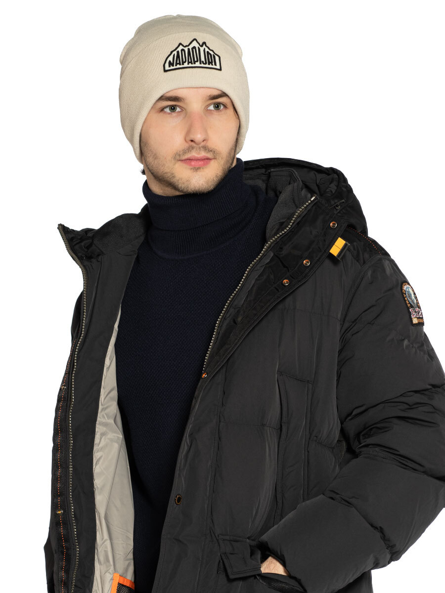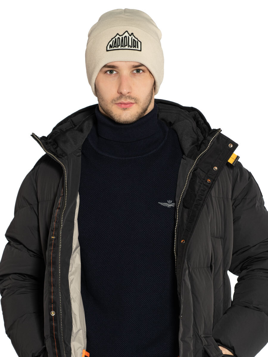 Шапка Napapijri F-Mountain 2. Стильная шапка бини мелкой вязки выполнена из двухслойного мягкого трикотажа. Модель с широким отворотом и слегка удлиненной тульей хорошо облегает голову. На отвороте фигурная нашивка с логотипом бренда. Базовый предмет гардероба на прохладную осеннюю и зимнюю погоду. Состав: 100% акрил. Цвет Beige Dimity: бежевый. Произведено в Италии.