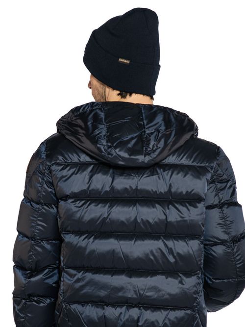 Шапка Napapijri F-Mountain 2. Теплая шапка бини мелкой вязки выполнена из двухслойного мягкого трикотажа. Модель с широким отворотом и слегка удлиненной тульей хорошо облегает голову. На отвороте фигурная нашивка с логотипом бренда. Базовый предмет гардероба на прохладную осеннюю и зимнюю погоду. Состав: 100% акрил. Цвет Blue Marine: темно-синий. Произведено в Италии.