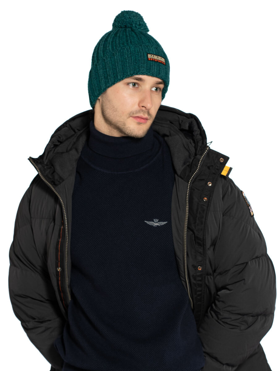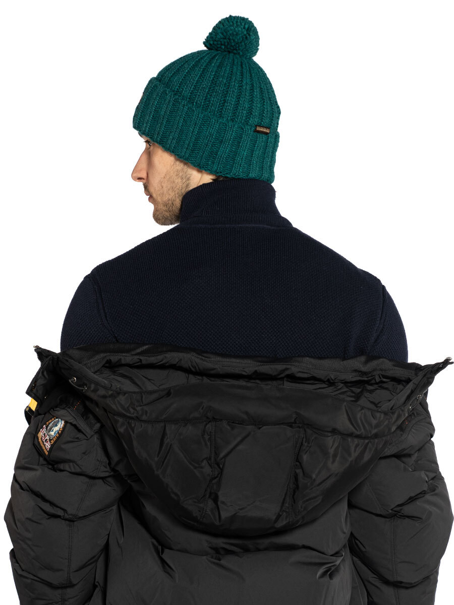 Шапка Napapijri Fea 1. Теплая шапка рельефной вязки из мягкой и объемной пряжи. Модель выполнена в стиле классических шапок с отворотом и дополнена помпоном. На отвороте нашит логотип бренда. Комфортная, приятная к коже, стильная шапка - обязательный элемент гардероба поздней сенью, зимой и ранней весной. Состав: 75% акрил, 10% шерсть, 10% полиамид, 5% вискоза. Цвет Bayberry Green: зеленый. Произведено в Италии.
