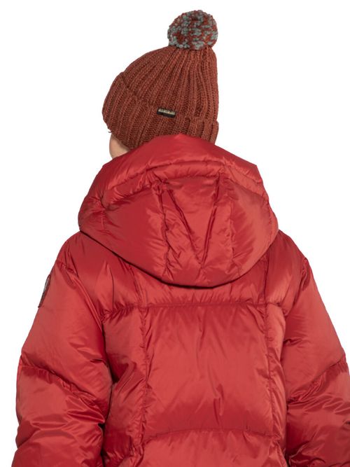 Шапка Napapijri Semiury W 3. Теплая женская шапка рельефной эластичной вязки, хорошо облегающая голову. Модель выполнена из мягкой и объемной смесовой пряжи с добавлением шерсти и вискозы. Головной убор имеет отворот и двухцветный помпон. На отвороте нашивка с фирменным символом бренда. Идеальный аксессуар для завершения любого образа в городе и на природе. Состав: 75% акрил, 10% шерсть, 10% полиамид, 5% вискоза. Цвет Red Sauce: красный. Произведено в Италии.