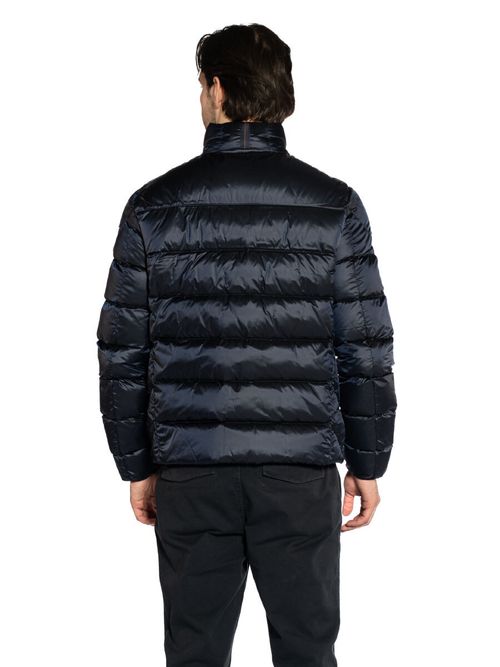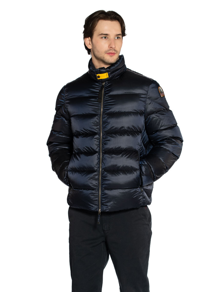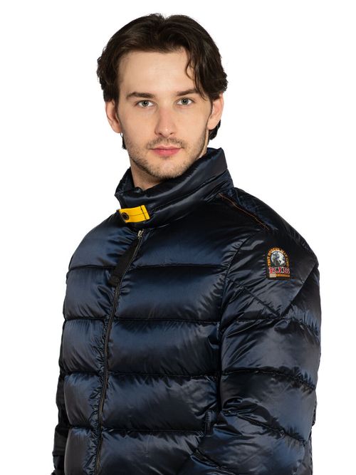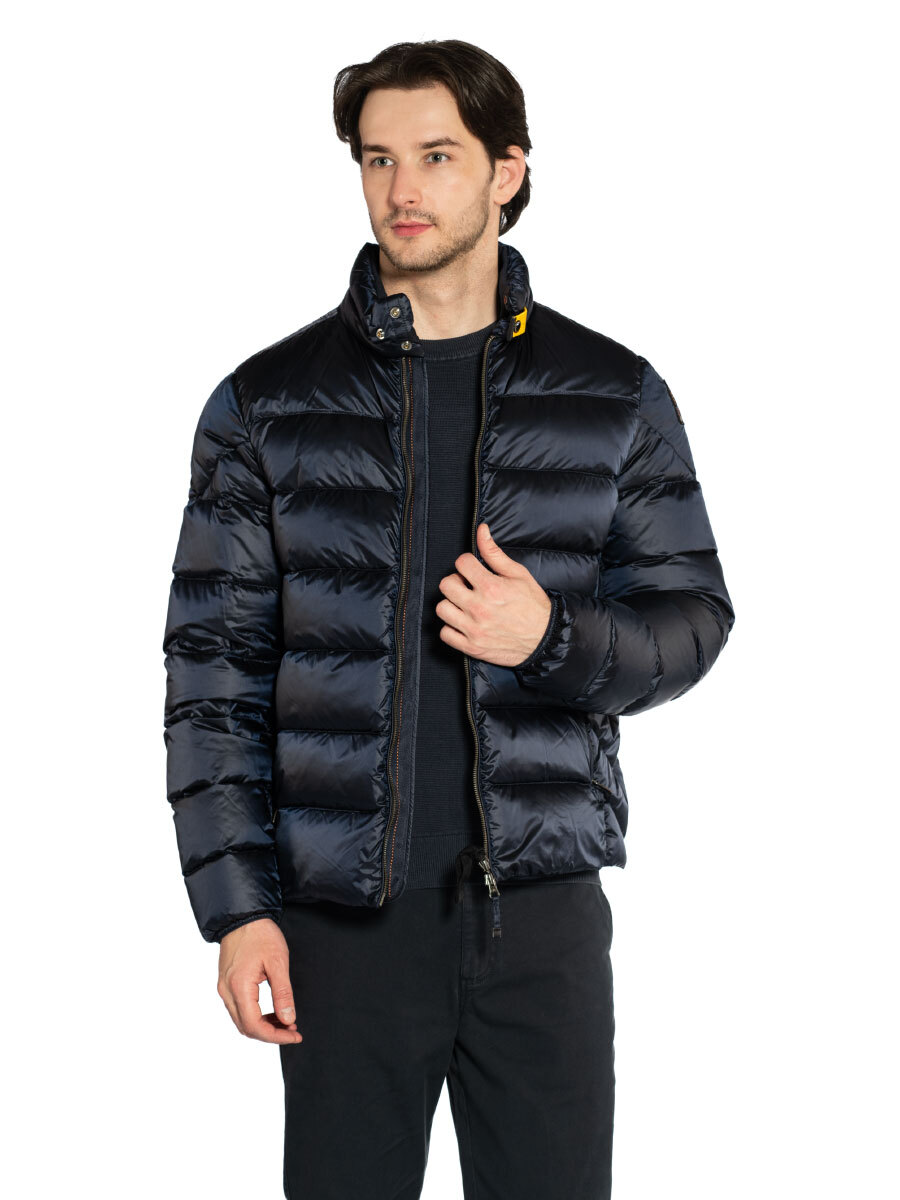 Пуховик мужской Dillon. Пуховая куртка выполнена из прочного ветрозащитного материала с водоотталкивающей пропиткой. Верхняя ткань из волокон полиэстера и нейлона с плотным саржевым переплетением дополнена покрытием, не пропускающим пух. Изделие наполнено отборным утиным пухом. Пуховик имеет двухзамковую застежку-молнию, два больших кармана на молнии и два внутренних кармана. Функциональные детали: регулируемый шнурок по низу куртки, манжеты с отделкой из лайкры, вентиляционные отверстия в области подмышек. Воротник-стойка оформлен фирменным желтым ремешком-застежкой, на рукаве брендированная нашивка. Идеальный выбор на холодное межсезонье и теплую зиму. Состав: 60% полиэстер, 40% полиамид. Подкладка: 100% полиамид. Наполнитель: 100% утиный пух. Цвет Blue Navy: темно-синий. Страна бренда: Италия. Страна производства: Индонезия.