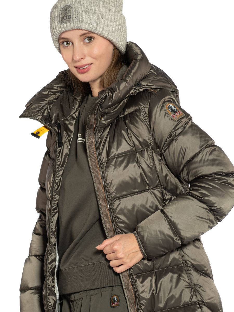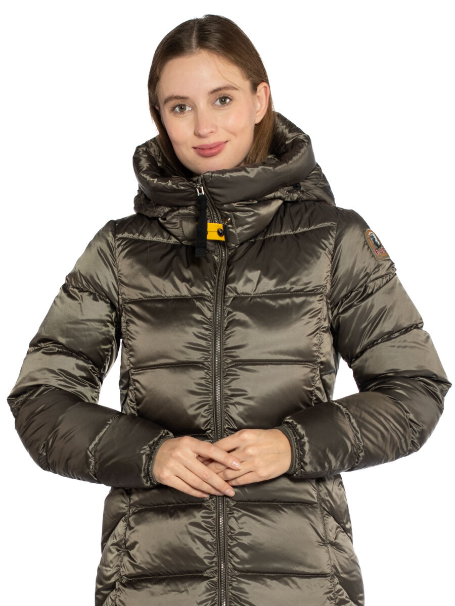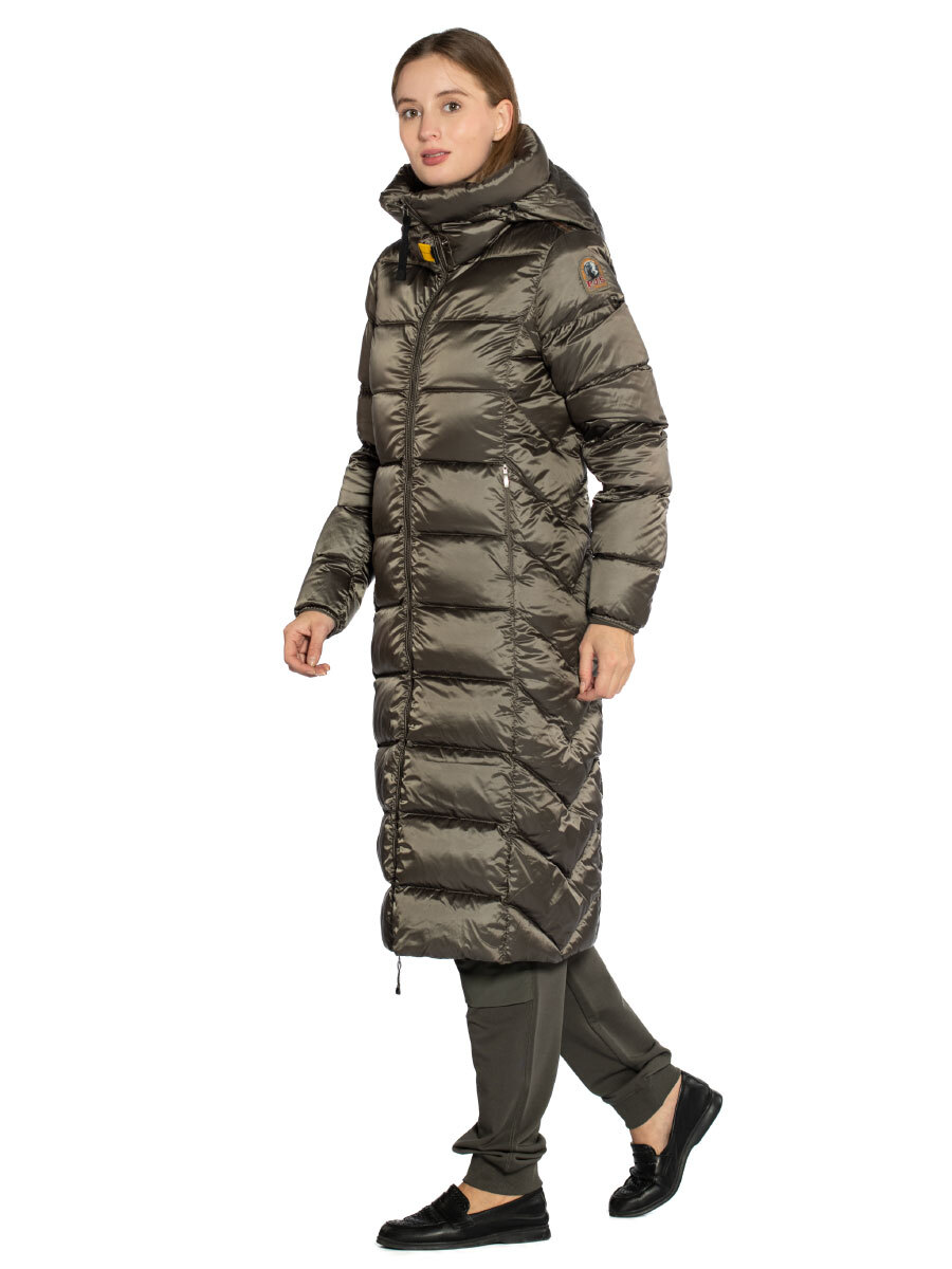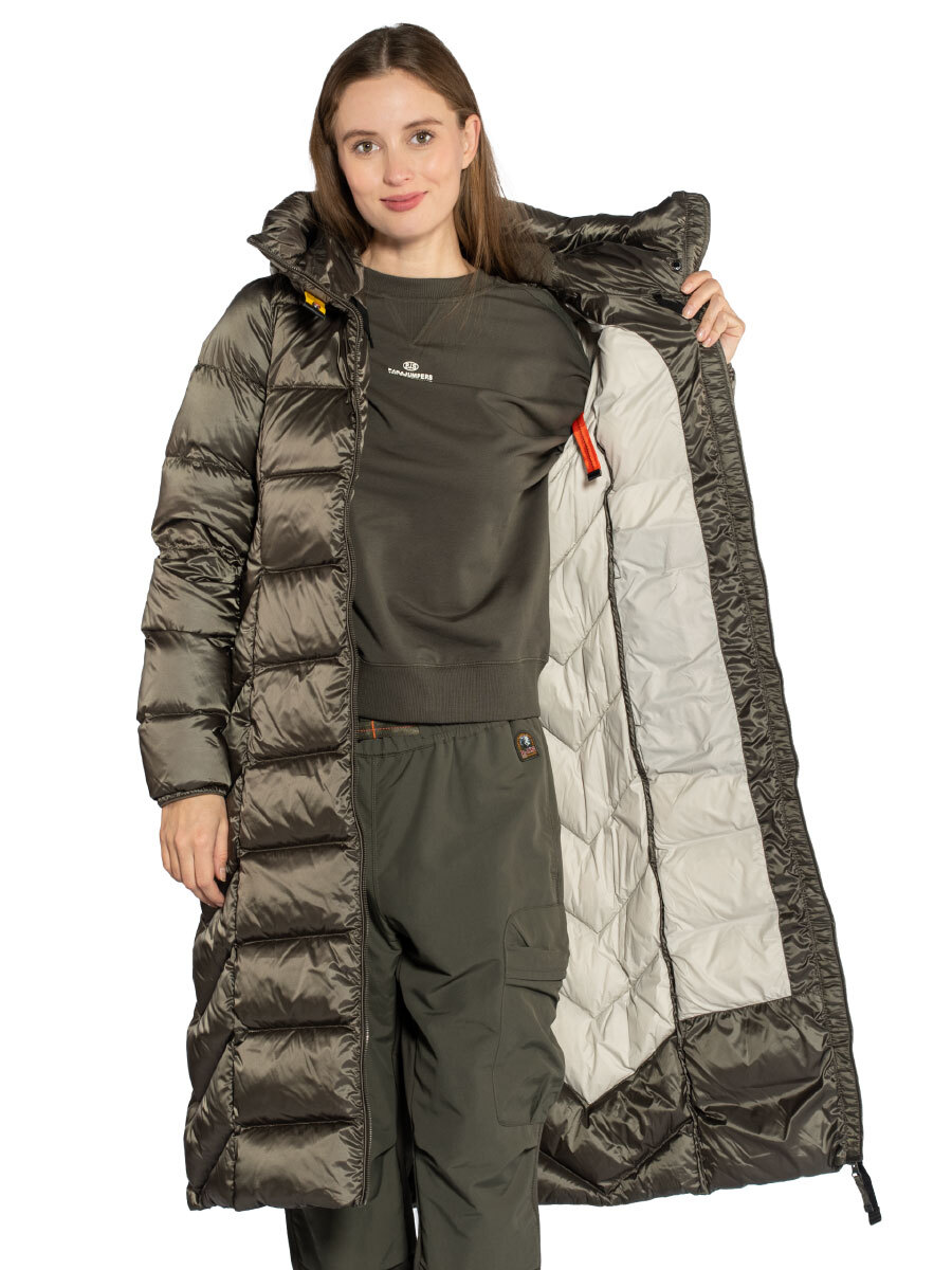 Пуховик женский Leah. Длинное пуховое пальто выполнено из прочного ветрозащитного материала с водоотталкивающей пропиткой. Верхняя ткань из волокон полиэстера и нейлона с плотным саржевым переплетением дополнена покрытием, не пропускающим пух. Изделие наполнено отборным утиным пухом. Пуховик полуприлегающего силуэта застегивается на двухзамковую молнию с внутренней ветрозащитной планкой. Спереди в вертикальных рельефных строчках скрыты два кармана на молнии. Высокий воротник-стойка дополнен внутренней трикотажной вставкой для комфорта при ношении. Несъемный капюшон регулируется эластичной утяжкой, рукава оформлены лайкрой по краю. Вентиляционные отверстия в области подмышек обеспечивают необходимый воздухообмен во время активного движения. Завершает дизайн брендированная нашивка на рукаве и фирменный желтый ремешок-застежка. Идеальный выбор на холодное межсезонье и теплую зиму. Состав: 60% полиэстер, 40% полиамид. Подкладка: 100% полиамид. Наполнитель: 100% пух. Цвет Olive Grey: серо-оливковый. Страна бренда: Италия. Страна производства: Индонезия.
