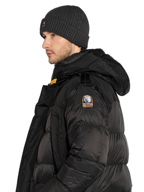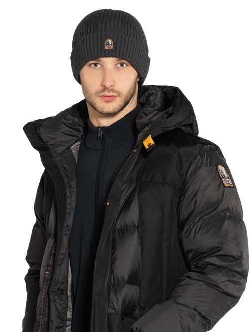 Шапка Parajumpers Rib Hat. Теплая шапка с отворотом, связанная рельефной резинкой. На отвороте нашивка с фирменным логотипом. Материал с мериносовой шерстью и синтетическими волокнами комфортный и долговечный, хорошо согревает голову, лоб и уши, обеспечивает износостойкость, комфорт и хорошую посадку на голове. Состав: 70% мериносовая шерсть, 30% акрил. Цвет Phantom: графит. Страна бренда: Италия. Страна производства: Китай.